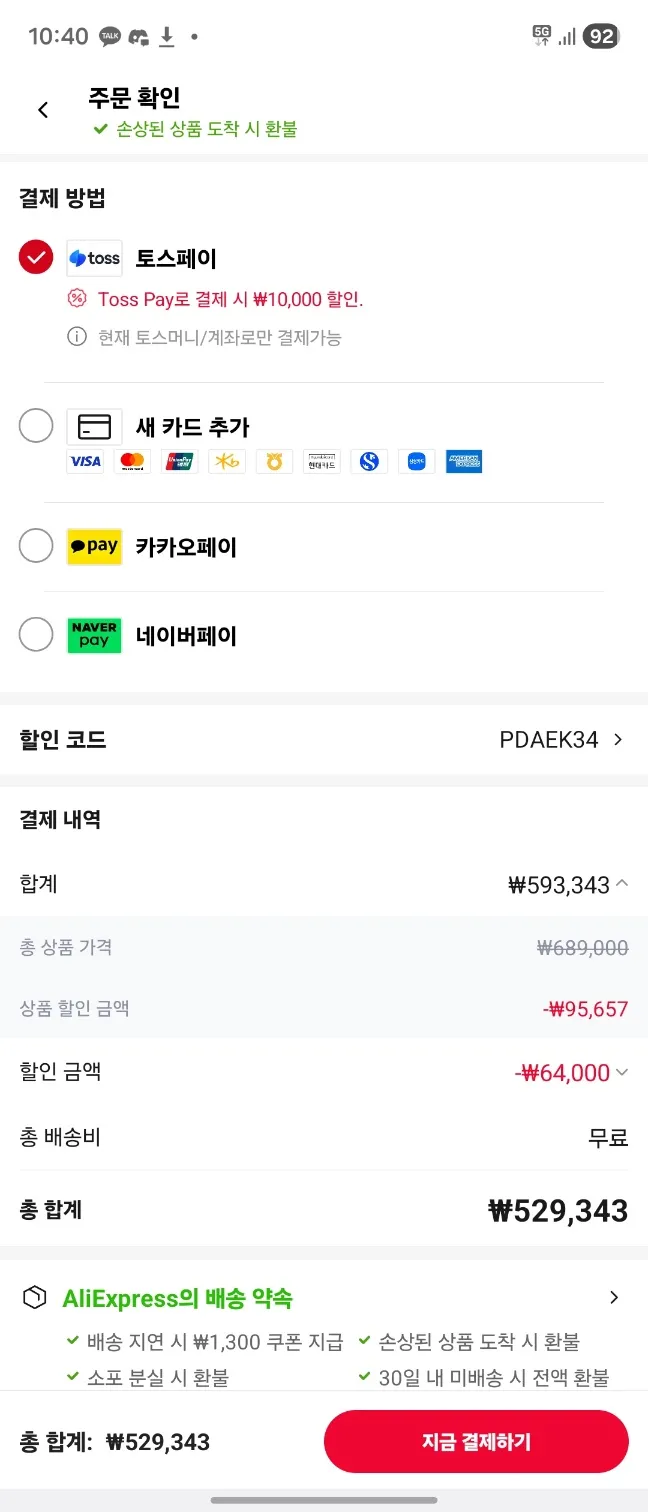토스페이 결제 할인 1만원