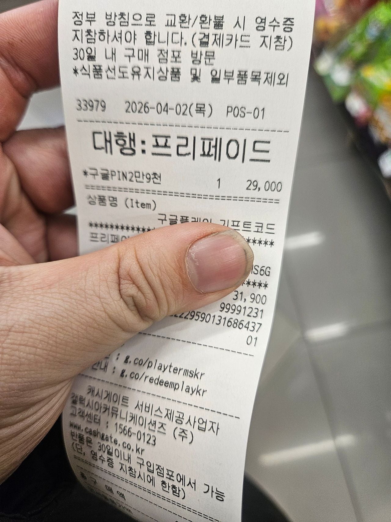 영수증에 코드 찍혀나오니 그거 입력하면 된다.