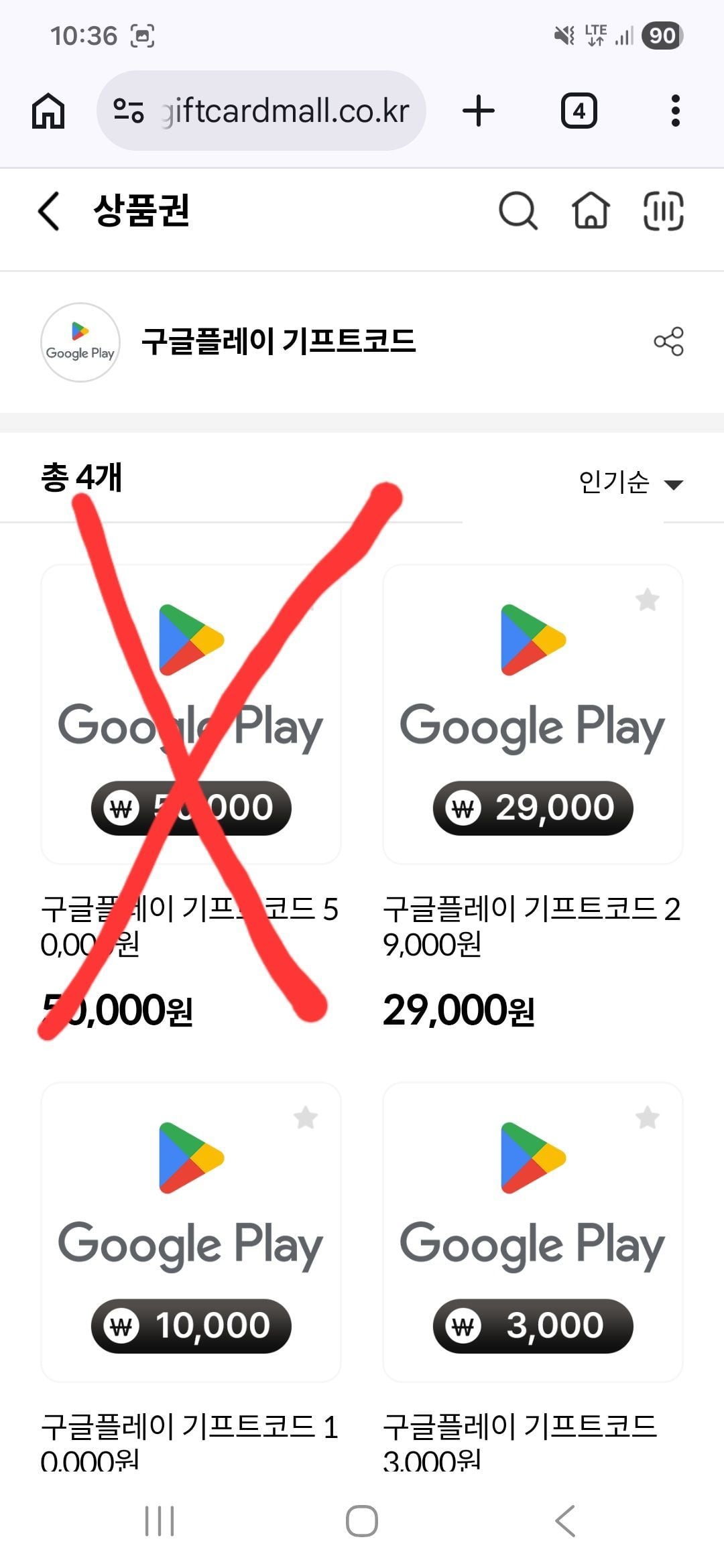 실물상품 카드 아니다.