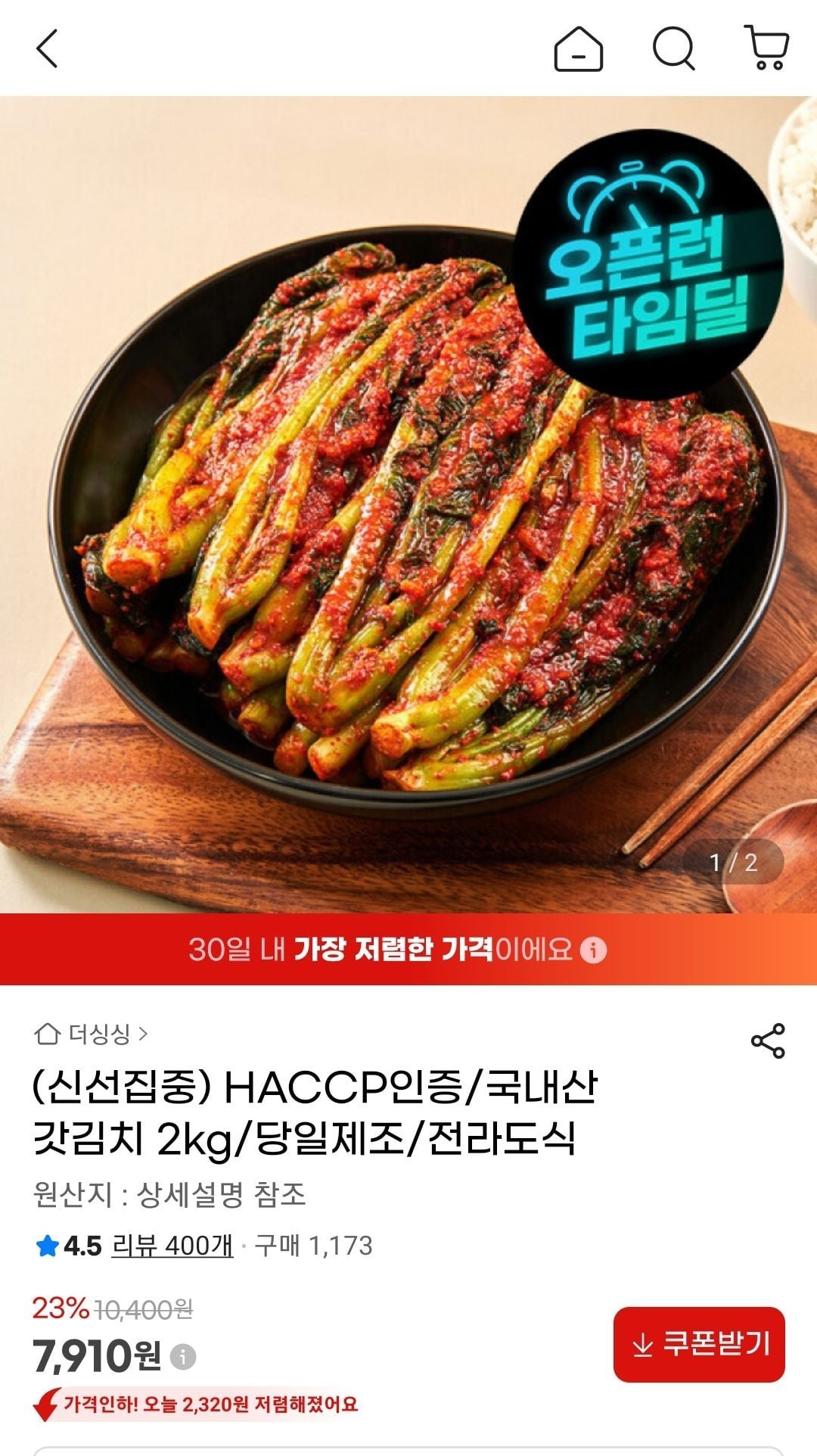 다나와더싱싱 국내산 전라도식 갓김치 2kg8,550원G마켓 최저가 기준, 무료배송