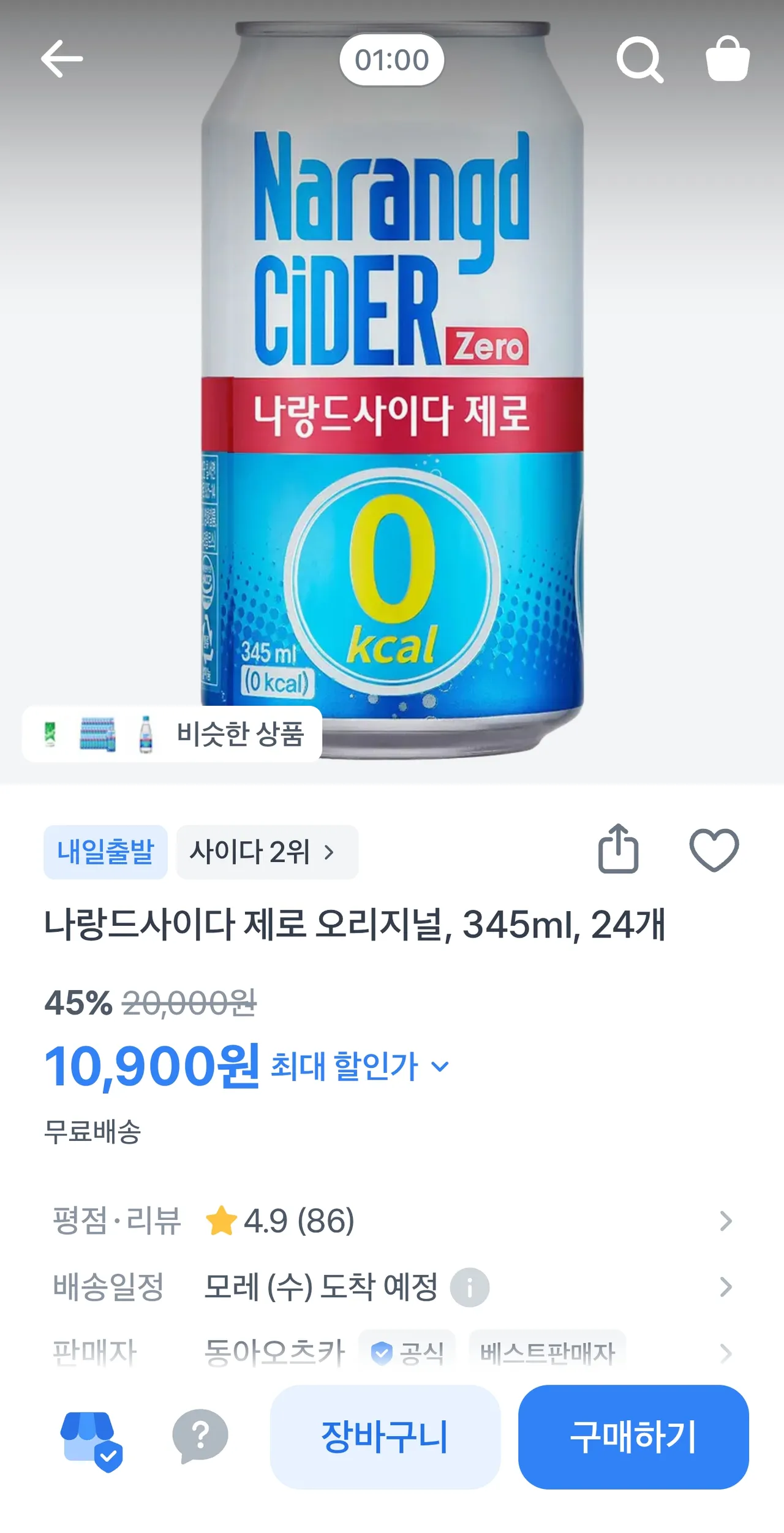 토스쇼핑나랑드사이다 제로 345ml 24개10,900원핫딜모음핫딜모음에서 제공한 가격
