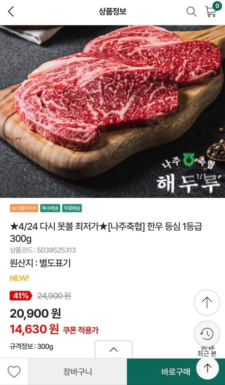 📦 나주축협 한우 등심 1등급