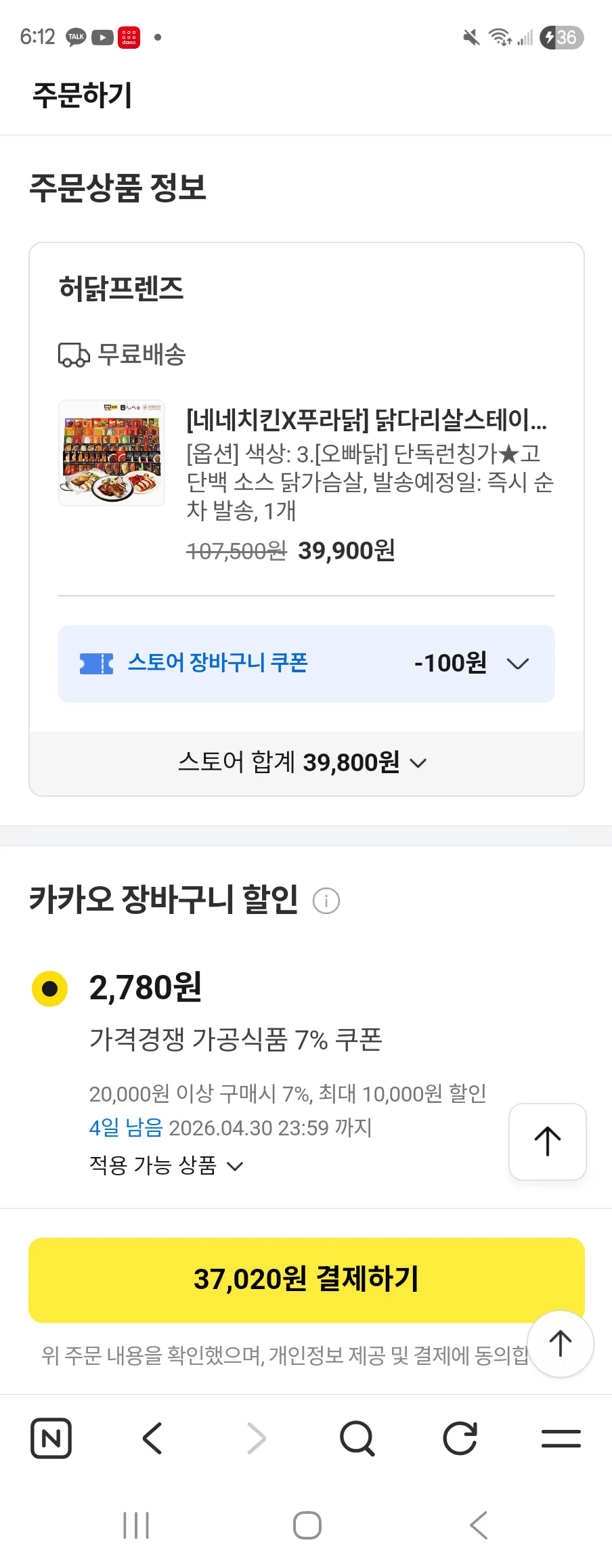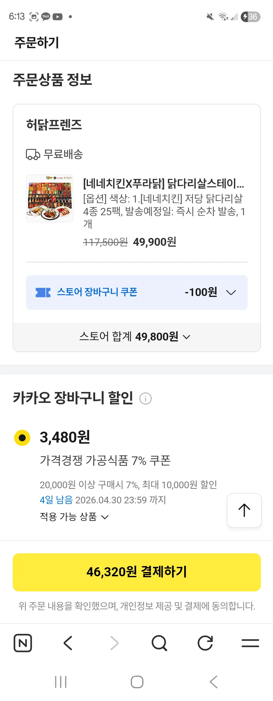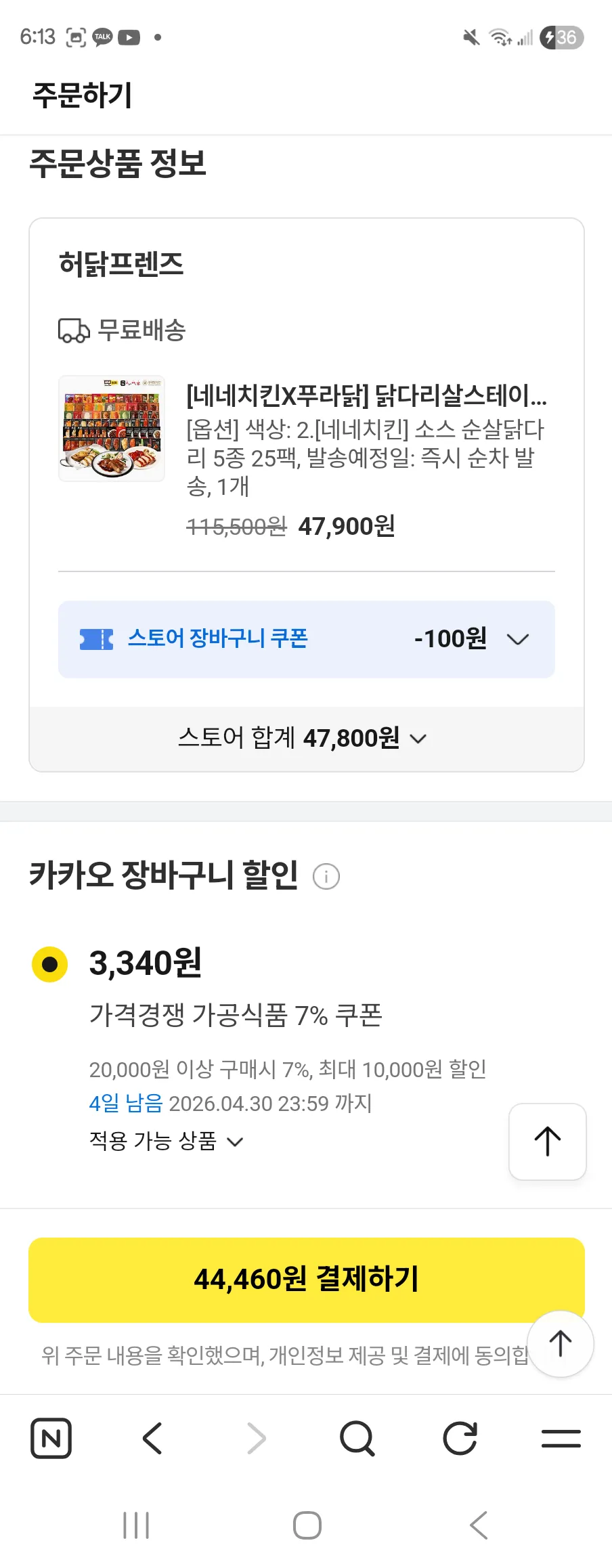 네네치킨X푸라닭 포함 닭다리살 패키지, 43% 할인
