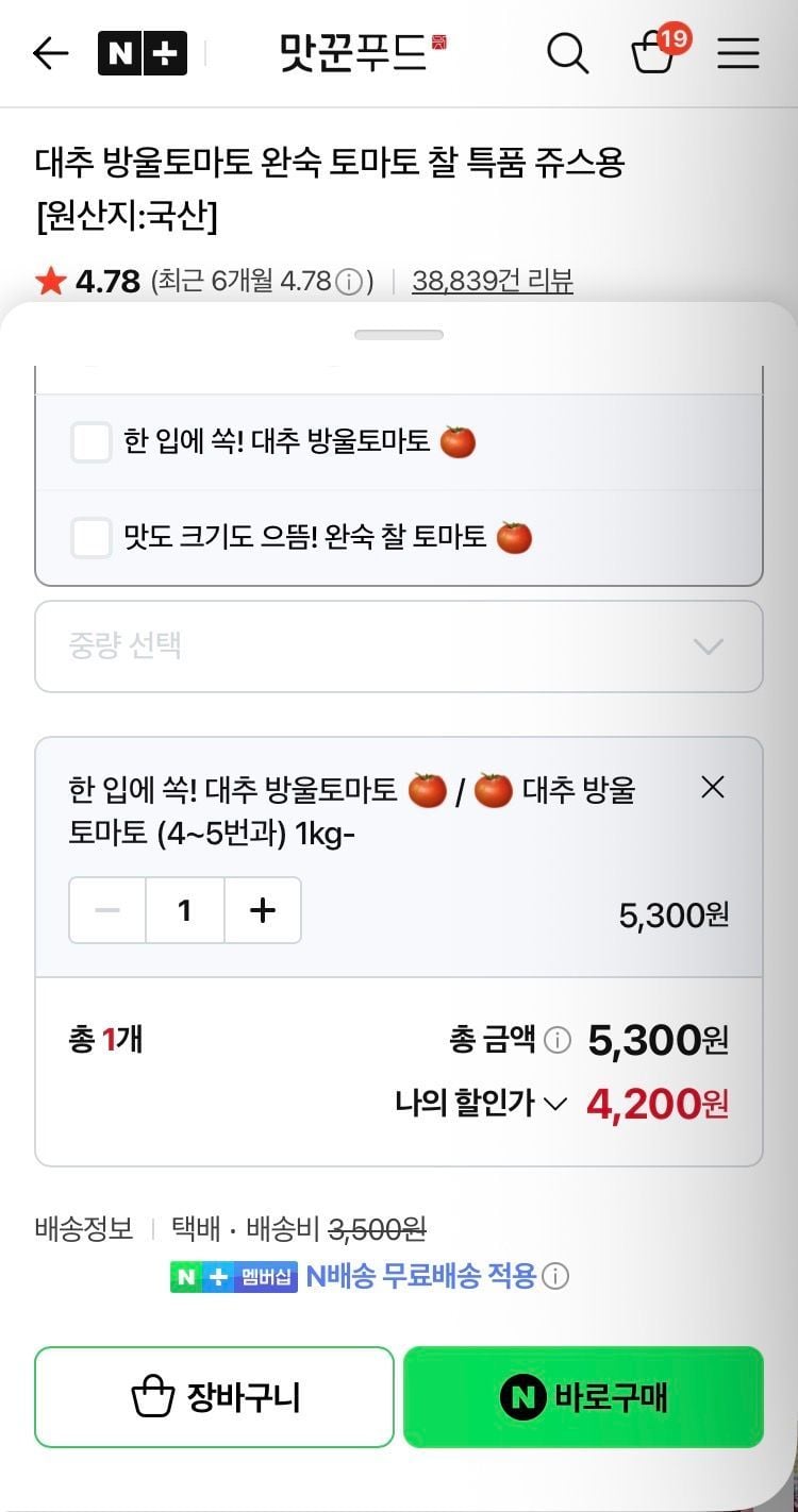 꿀과꿀과 대추 방울 토마토 3번과 5kg29,900원 (1kg당 약 5,980원)다나와 검색 결과, 5kg 기준