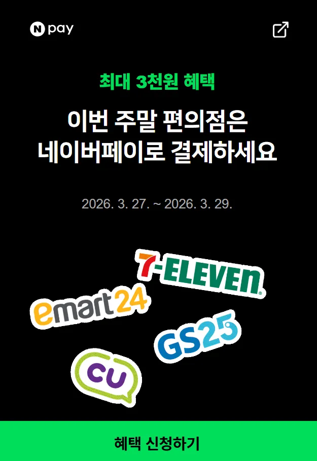 📦 [네이버페이] 편의점에서 포인트/머니로 2000원 이상 결제 시 500원 적립
