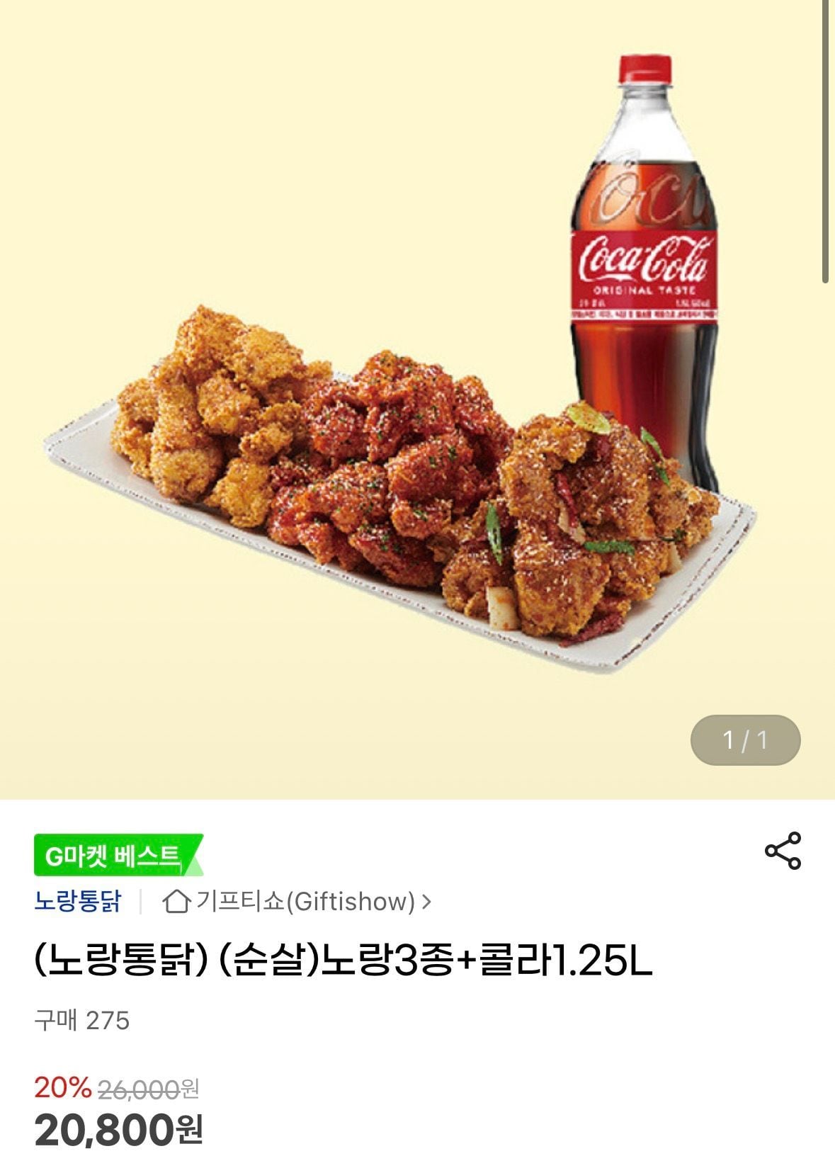 📦 노랑통닭 (순살)노랑3종+콜라1.25L