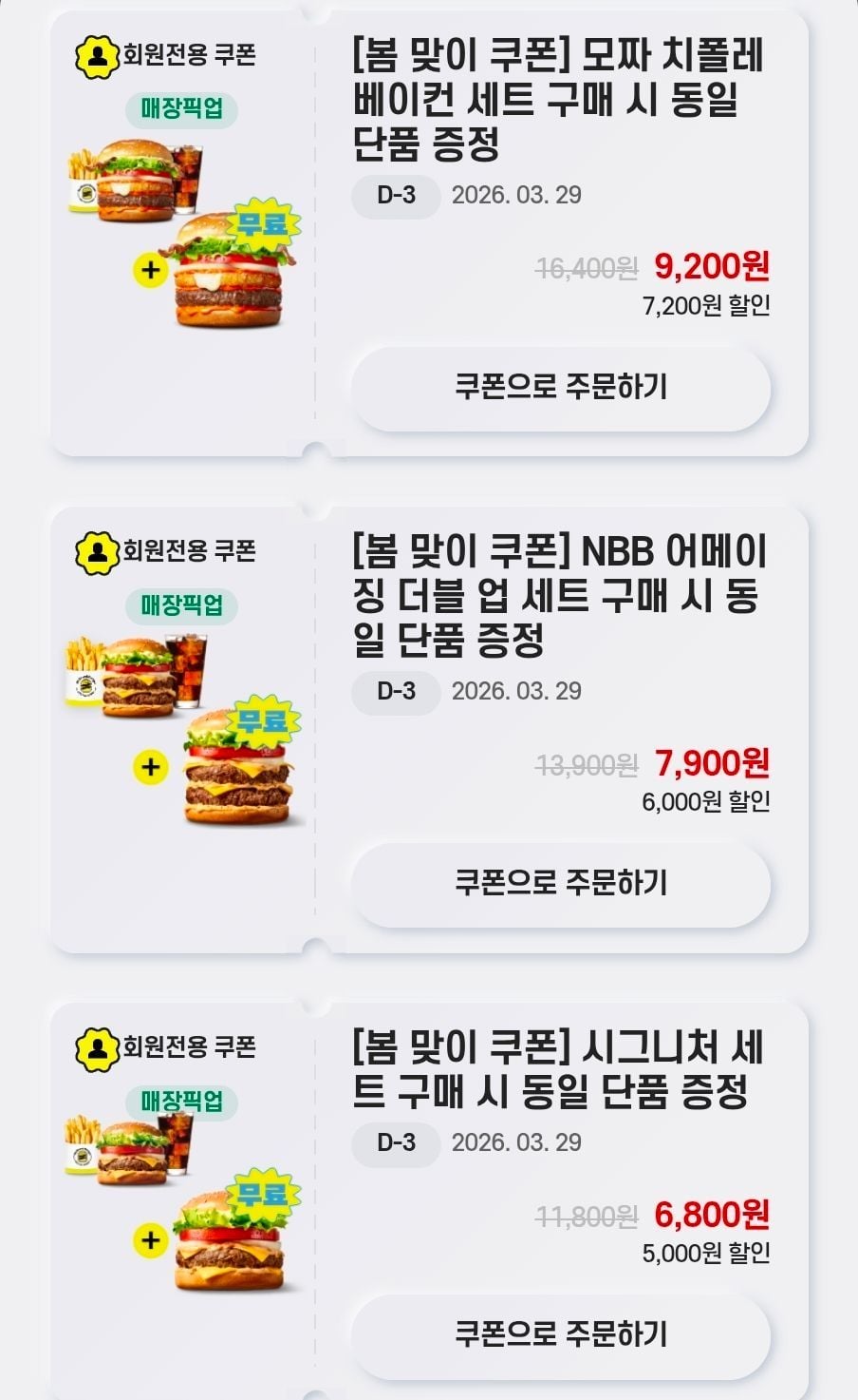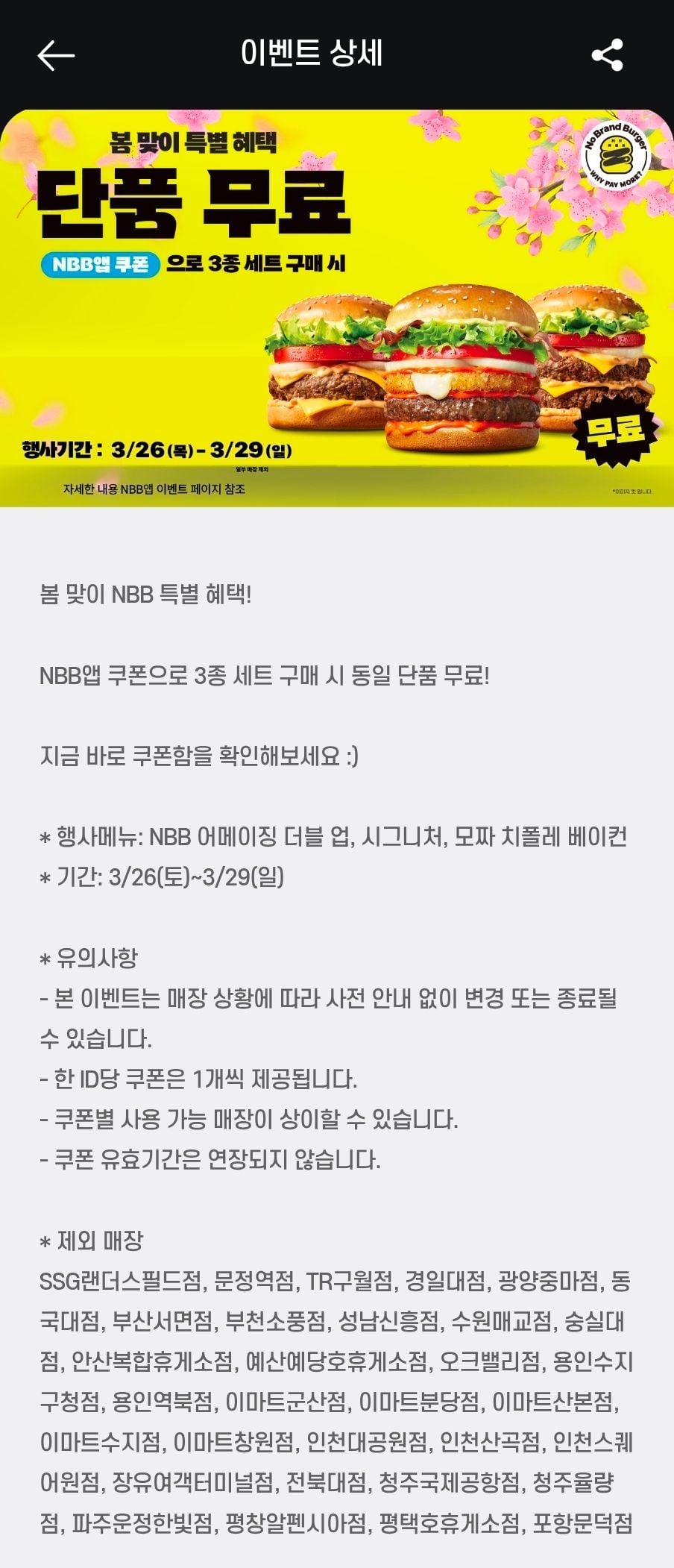 노브랜드버거 세트 구매 시 동일 단품 증정