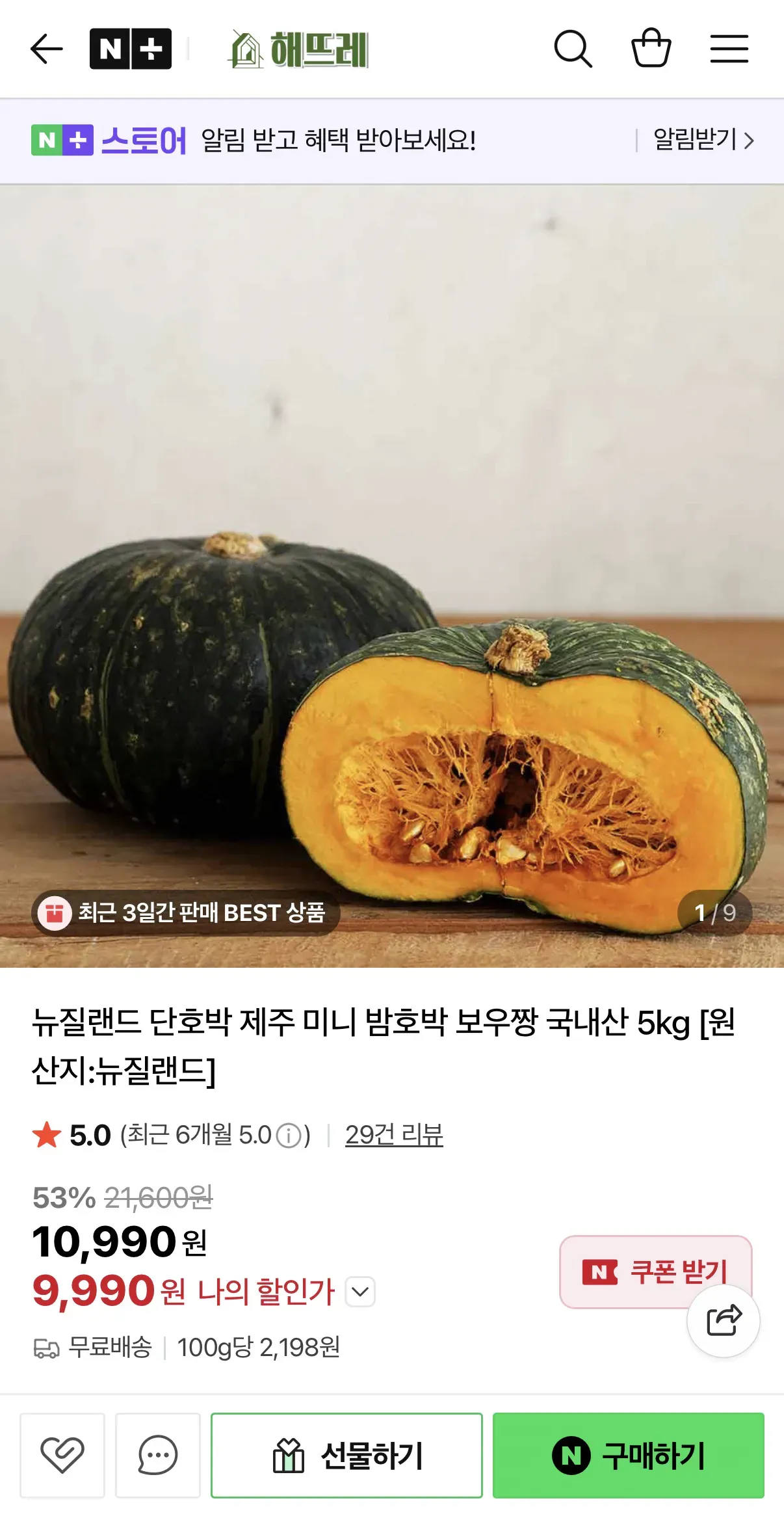 📦 뉴질랜드 단호박 제주 미니 밤호박 보우짱 국내산 2KG