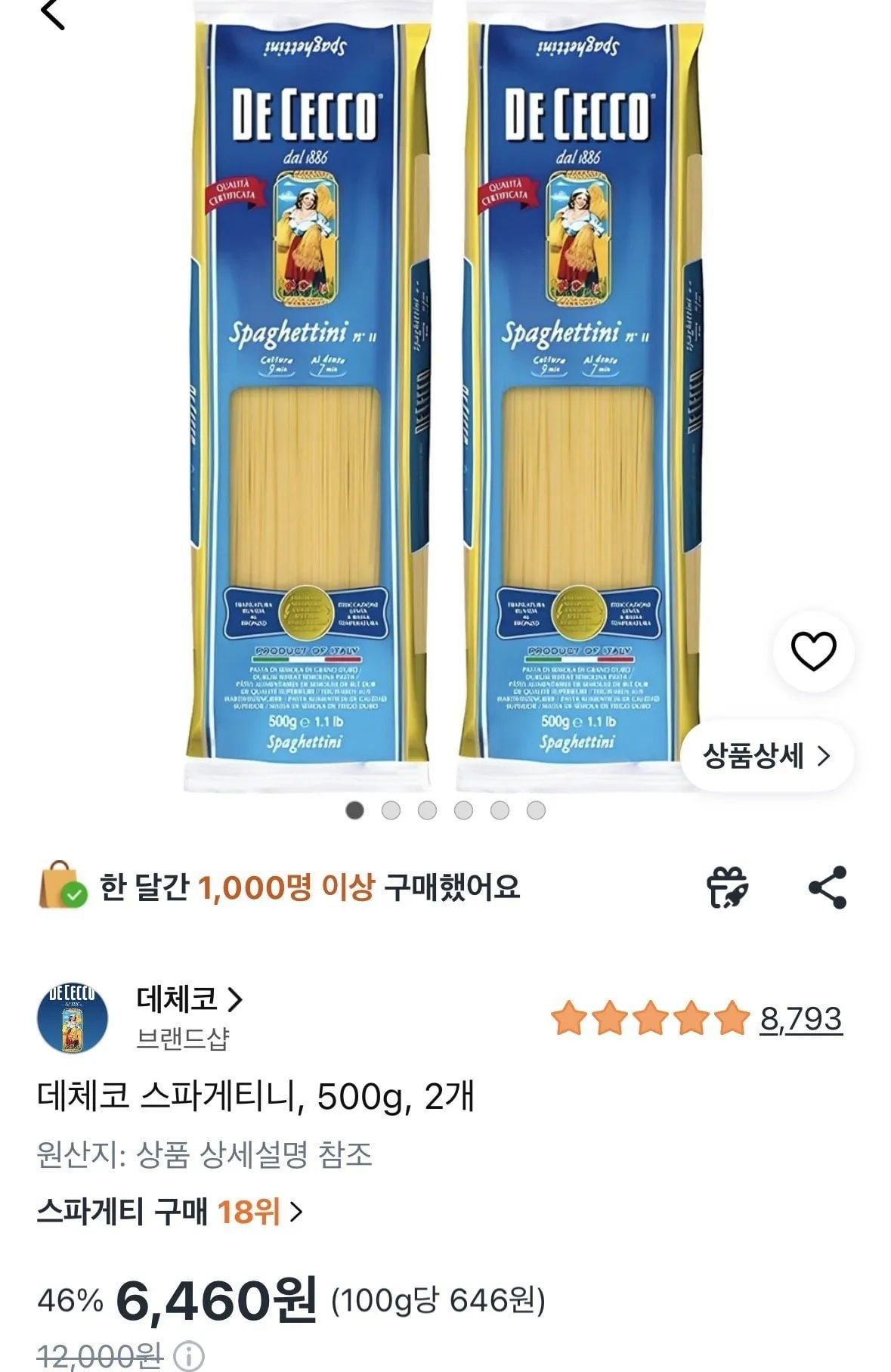동원몰데체코 스파게티니 500g (1개)7,950원1개 가격, 2개 기준 15,900원相当