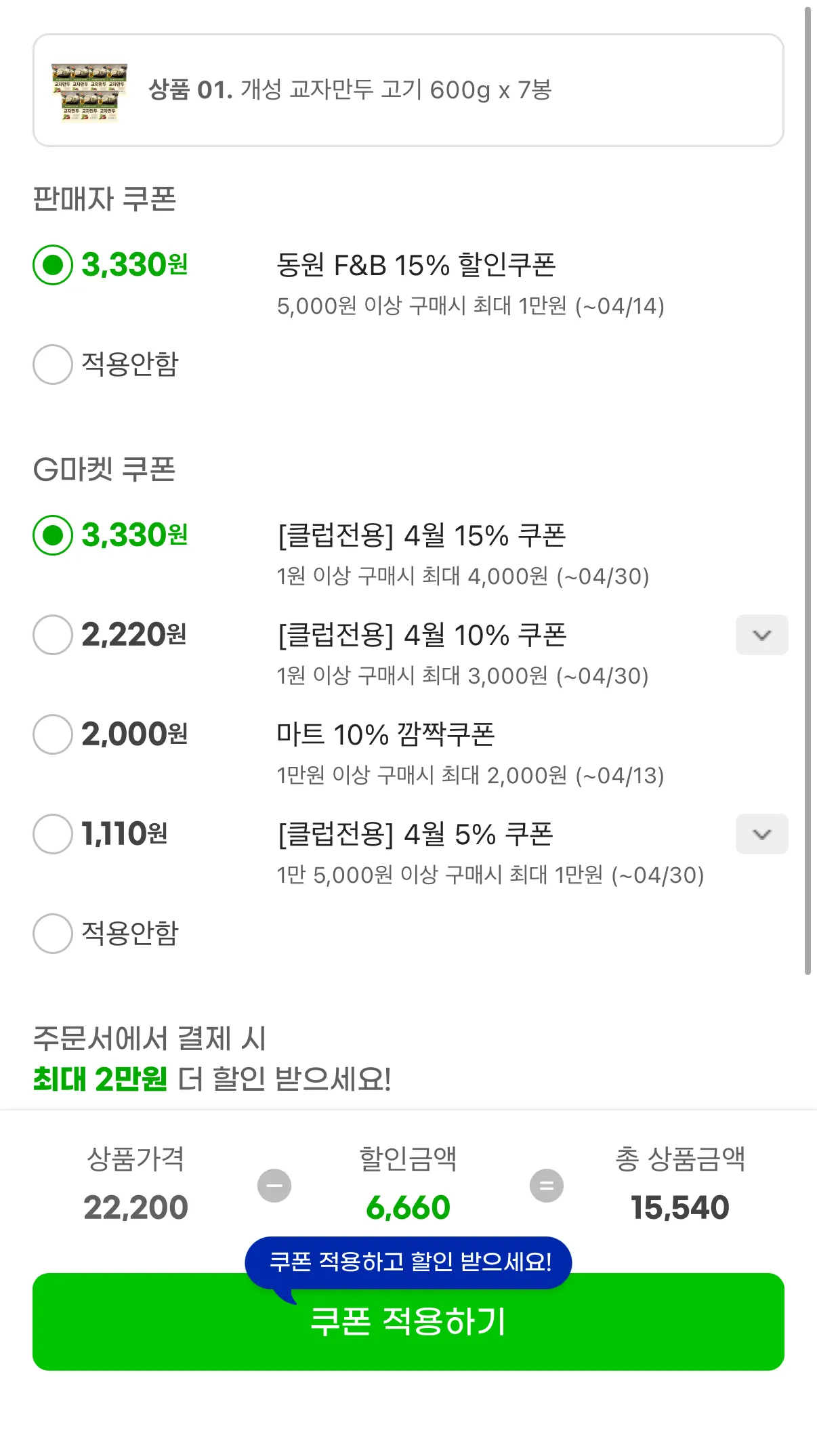 지마켓 유클럽 전용 15%+G마켓 15% 쿠폰 중복 적용하면 15,540원임