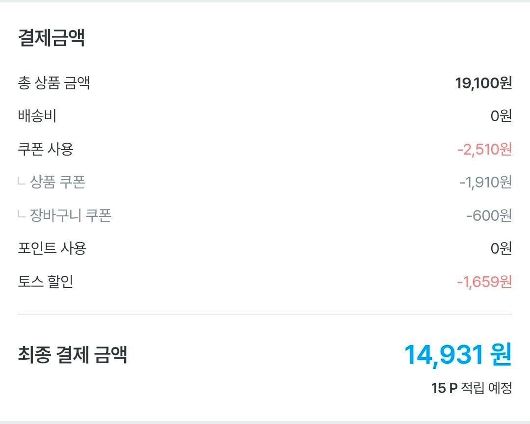 상품 쿠폰받고 토스결제하면 14931원