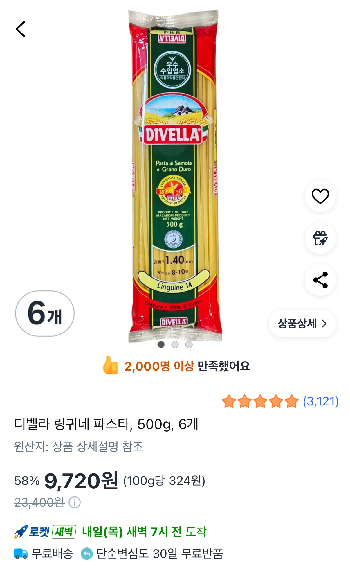 | 롯데온 | DIVELLA 디벨라 링귀니 파스타 14번 500g 24개 묶음 | 41,330원 | 24개 가격, 배송비 3,500원 |