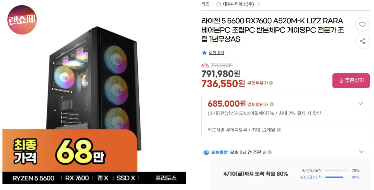 얘는 그래픽카드 대신 램이랑 SSD가 없는 반본체입니다