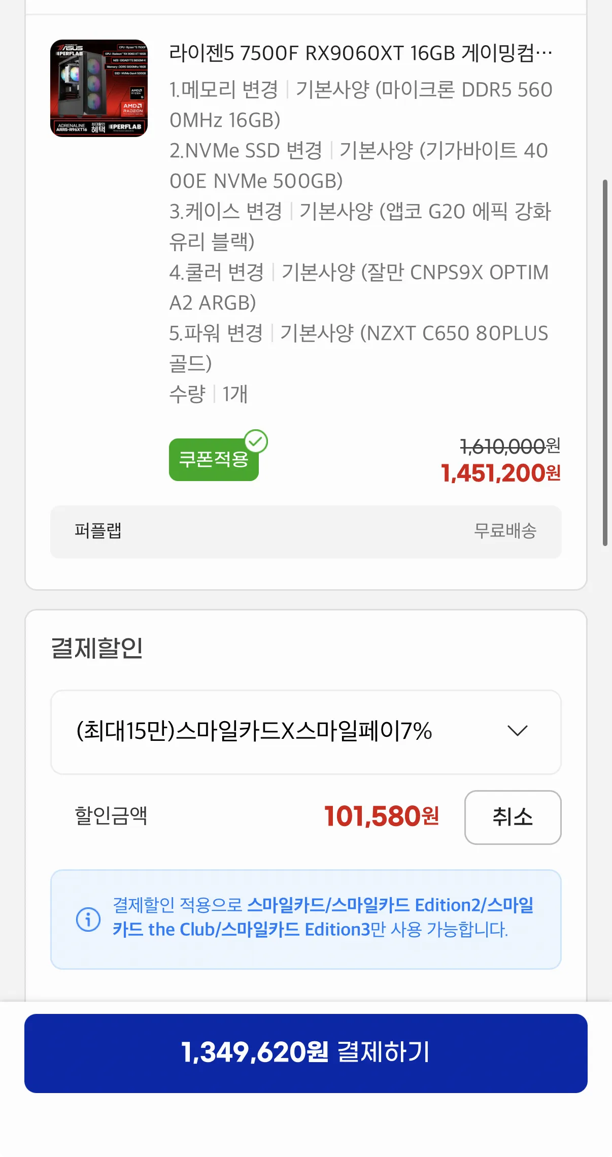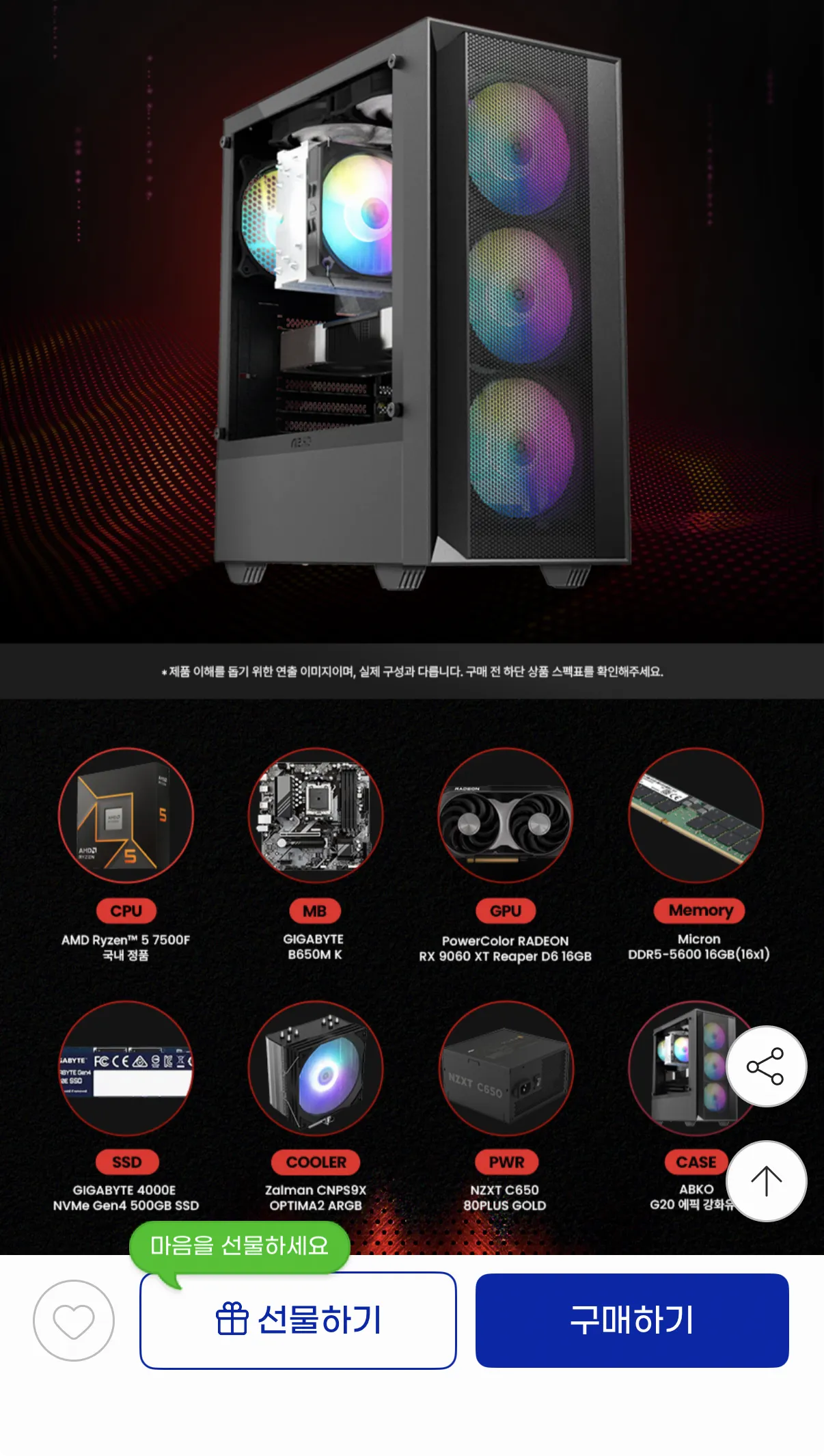 | 지마켓 | 라이젠5 7500F + 9060XT 16GB 완본체 | 1,349,620원 | 핫딜모음에서 제공한 가격 |