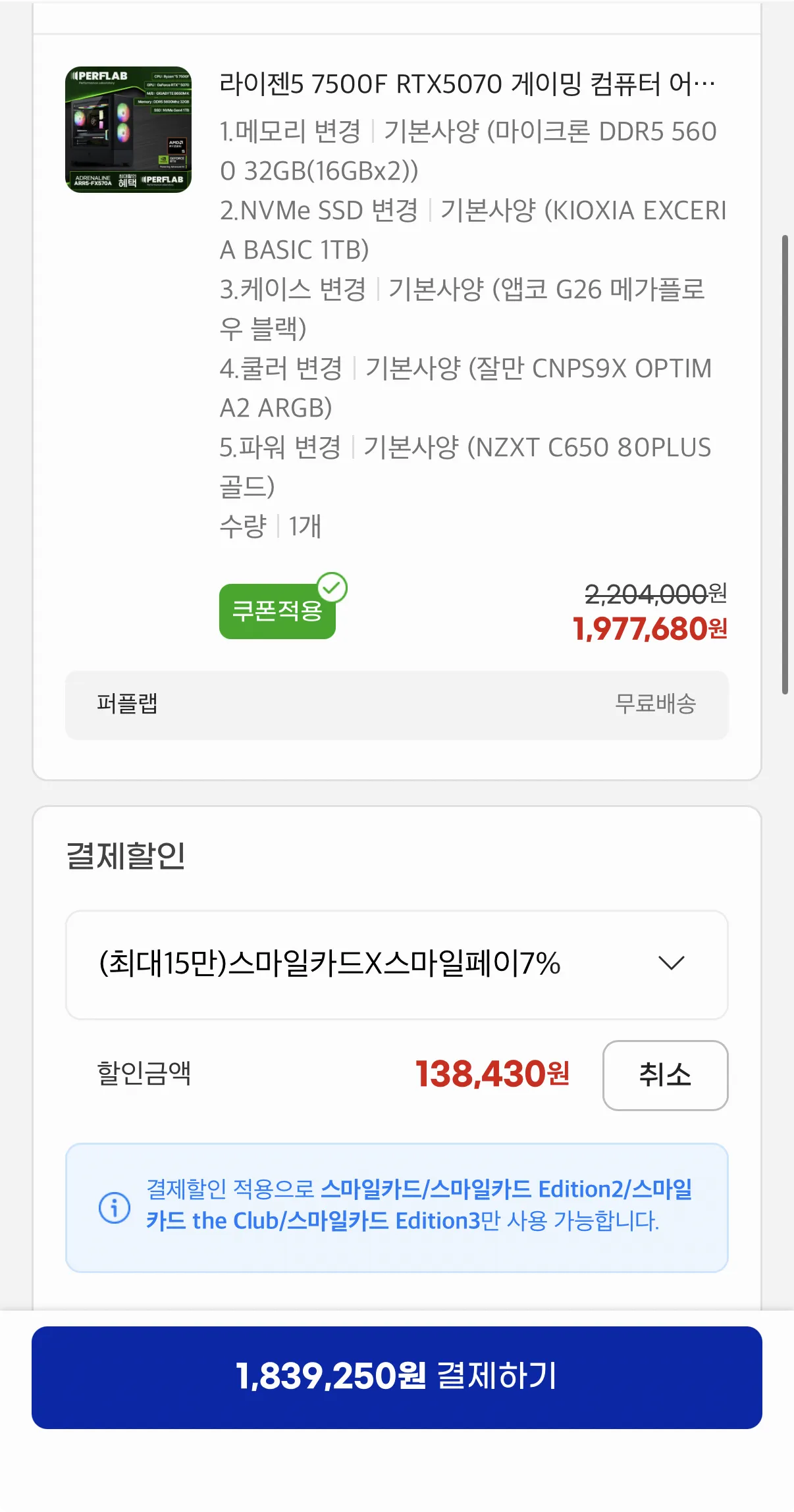 동급 구성 다른 업체에서 188만대인데 얘는 5만원 정도 낮게 나온 가격임
