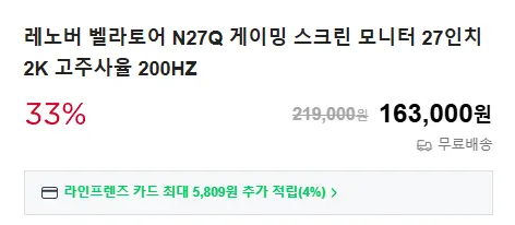 youchen.co.krLenovo 벨라토어 N27Q 200Hz고주사율 게이밍 모니터158,000원해외구매대행, 관부가세 발생 가능