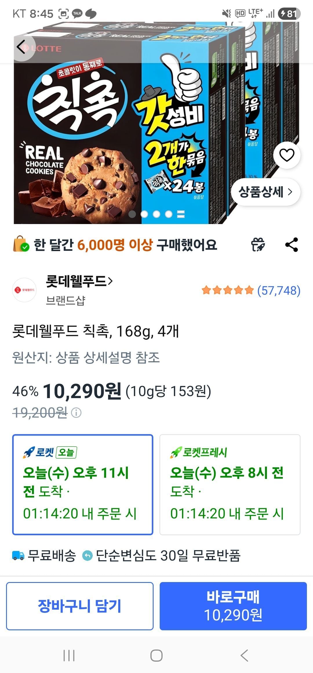 쿠팡롯데웰푸드 칙촉, 168g, 4개10,290원핫딜모음핫딜모음에서 제공한 가격