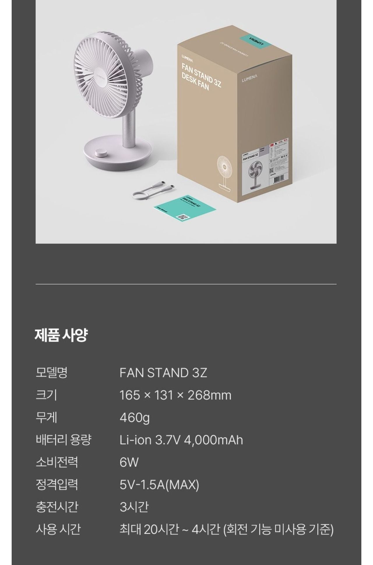 | 루메나 공식몰 | 루메나 탁상용 무선 선풍기 FAN STAND 3Z | 39,900원 | 기본 판매가 |