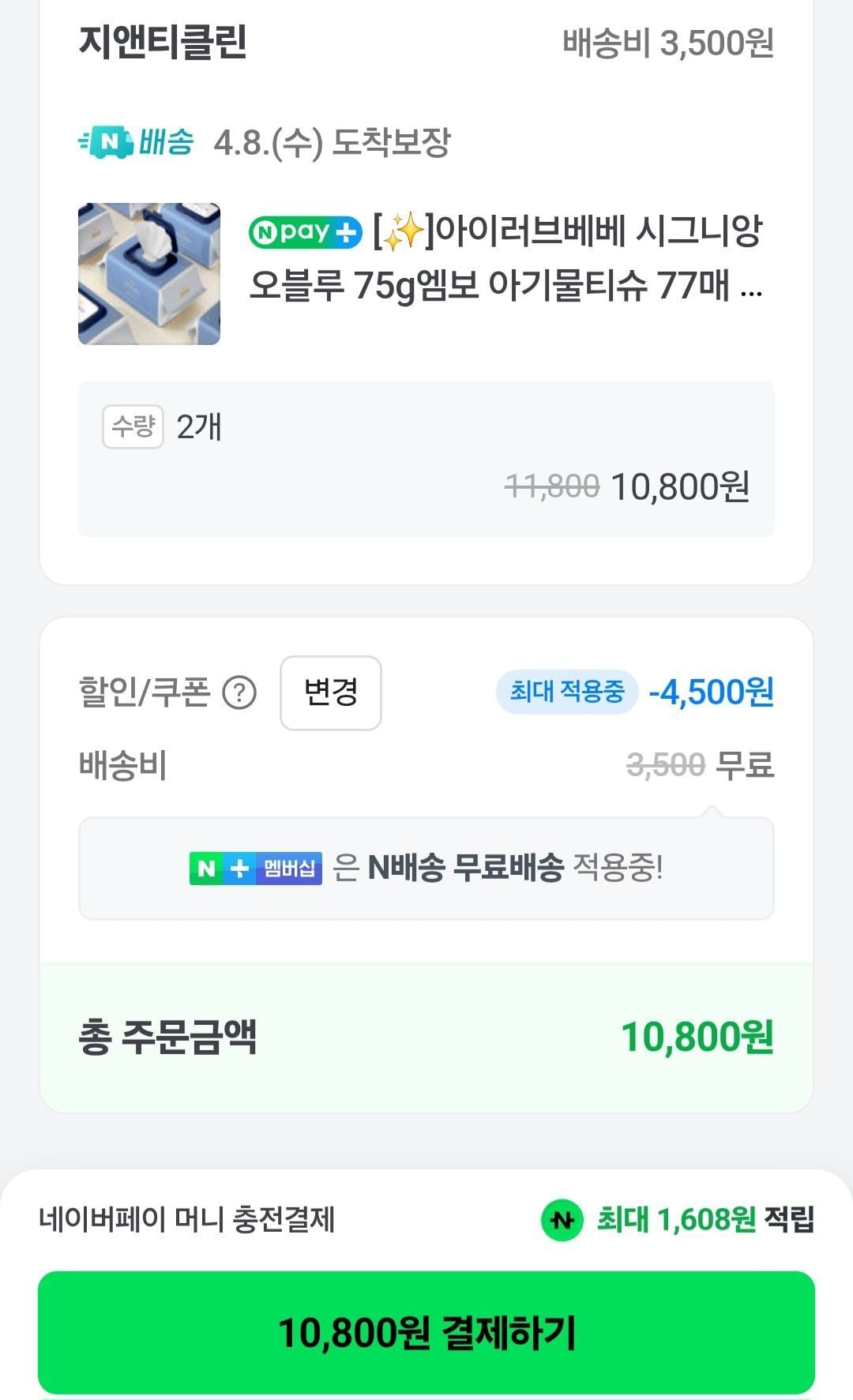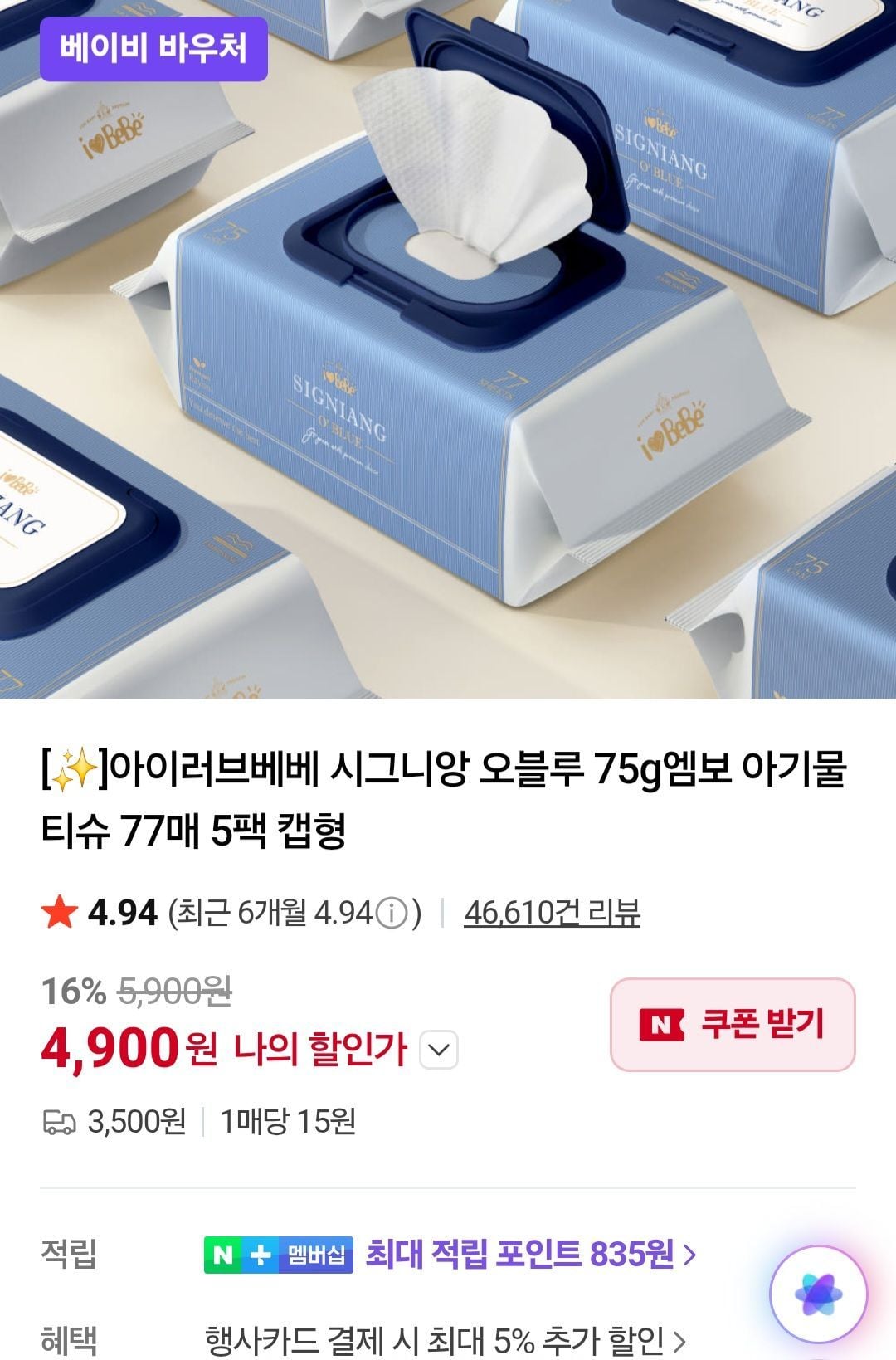 | 네이버 | 멤버십)아이러브베베 시그니앙 오블루 75g엠보 물티슈 10팩 | 10,800원 | 핫딜모음에서 제공한 가격 |