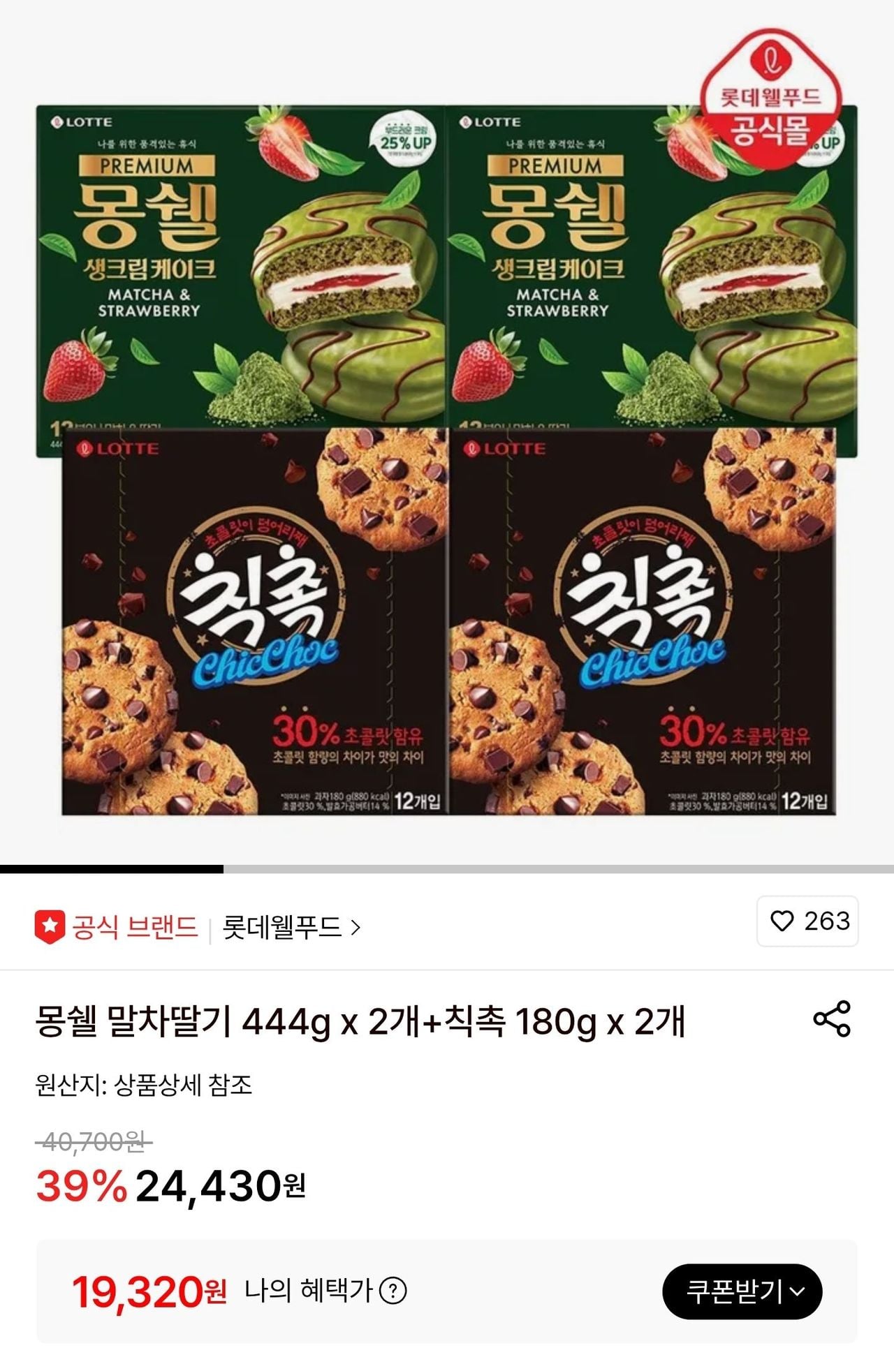 롯데온몽쉘 말차딸기 444g x 2개+칙촉 180g x 2개19,320원핫딜모음핫딜모음에서 제공한 가격
