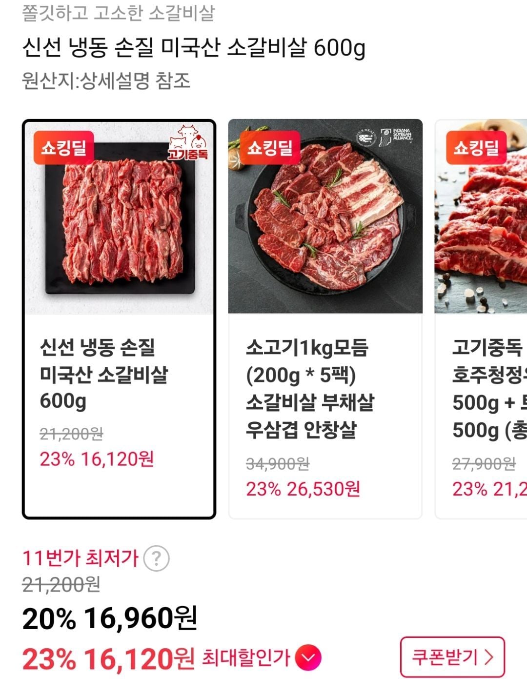 | 쇼핑하우 | 미국산 소갈비살 | 25,350원 | 역대 최저가, 무료배송 |