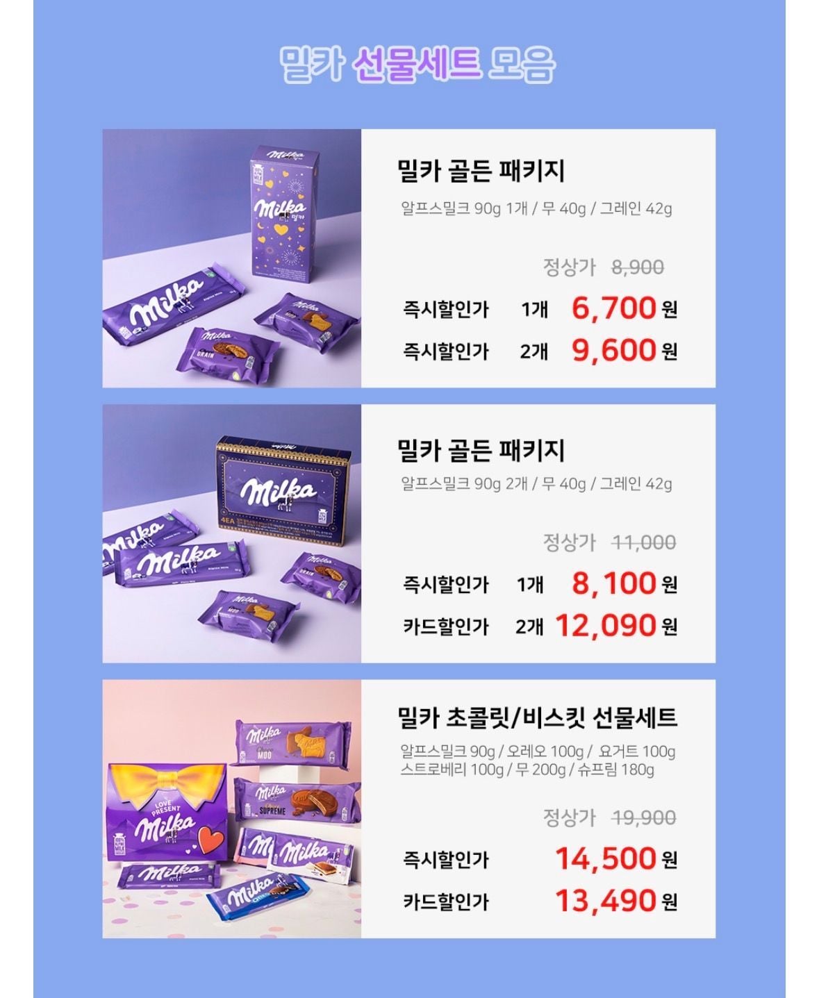 밀카 러블리 패키지 1+1 구성으로 선택시 6개 개당 1600원 토스페이/카페할인 받으면됨