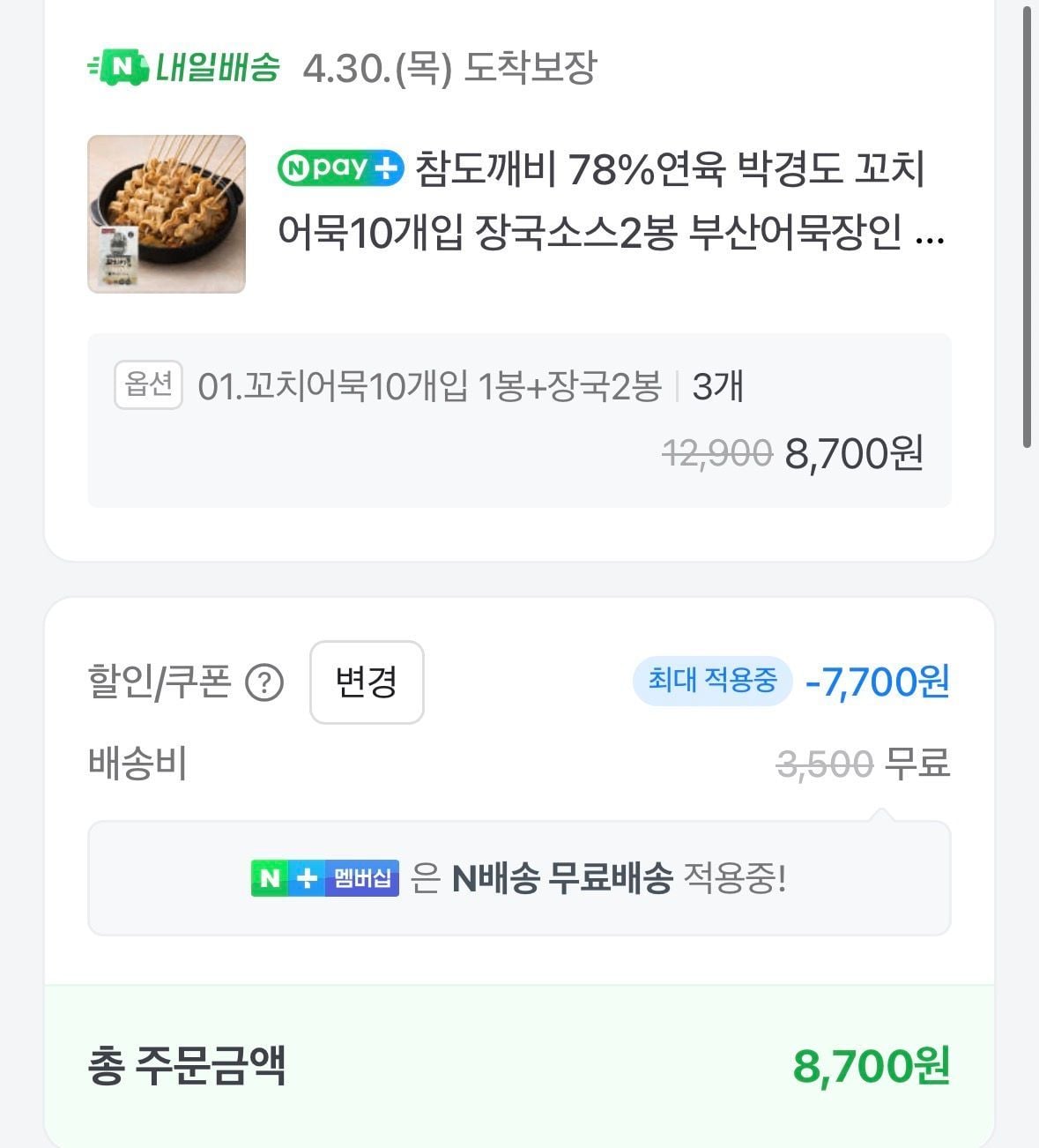 어묵 함량 78%고 3세트로 구매시 네이버 멤버십 무배됨