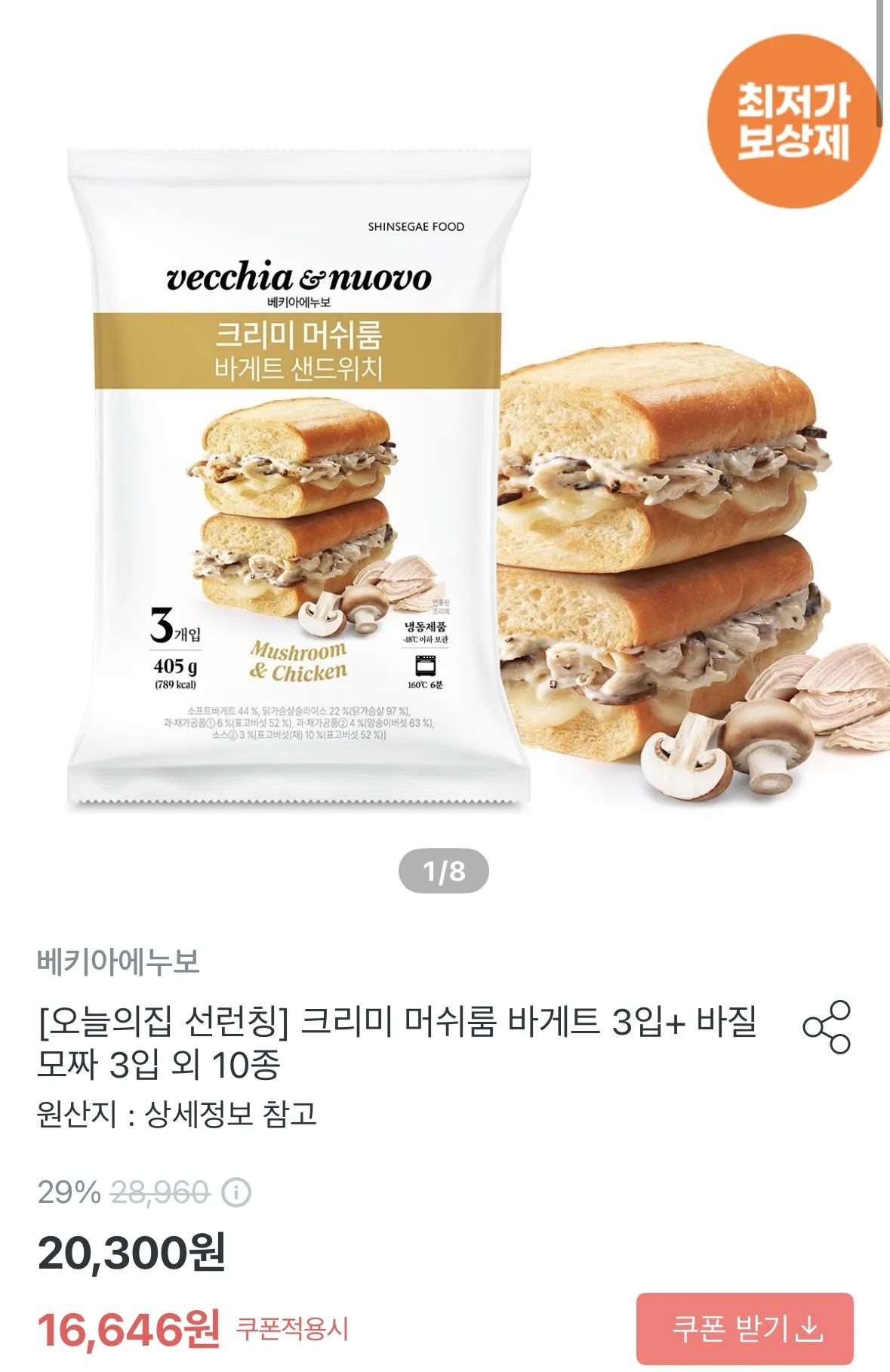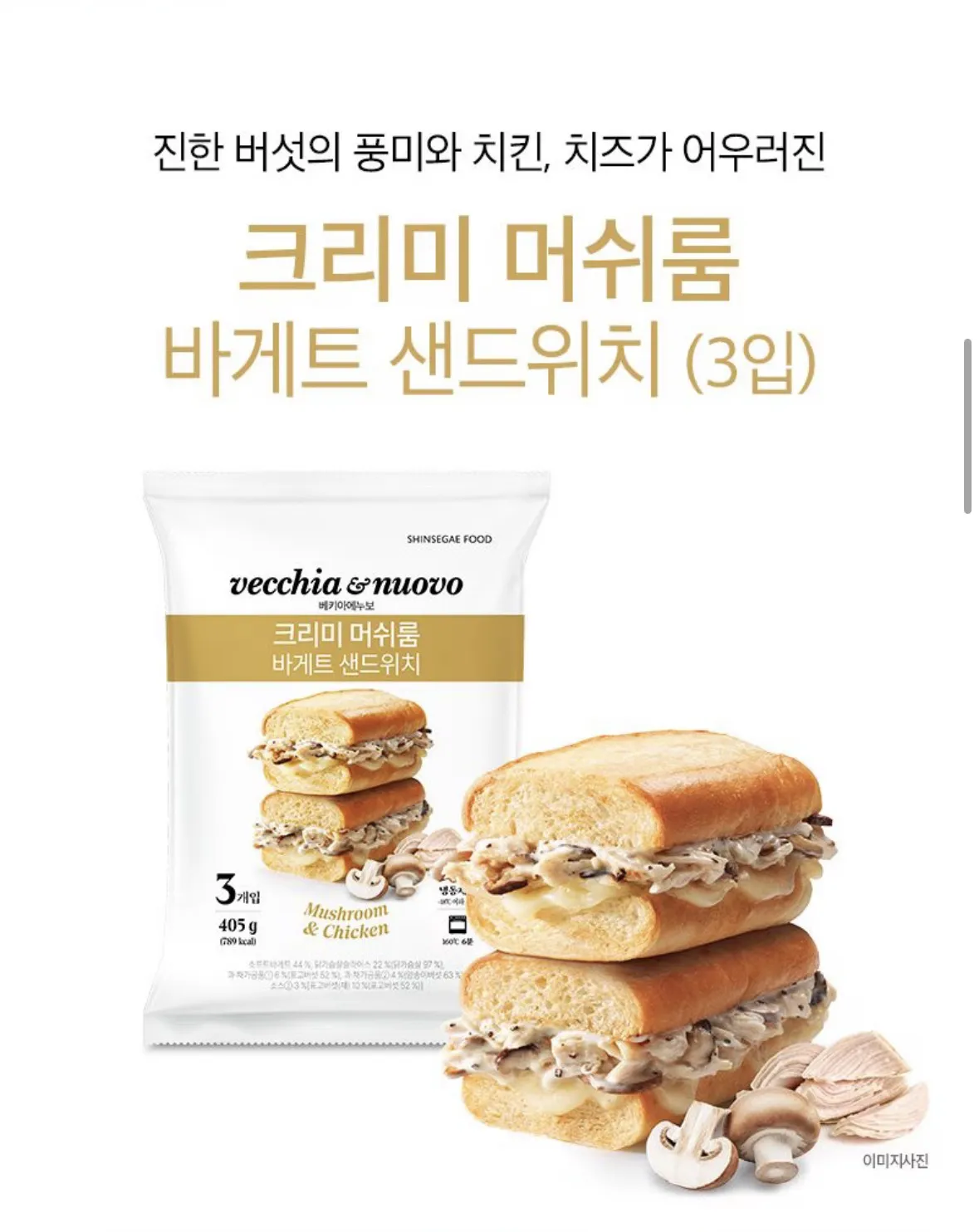 머쉬룸+닭고기 크리미 바게트 샌드위치 신상이고 냉동 에어프라이어 조리 가능함