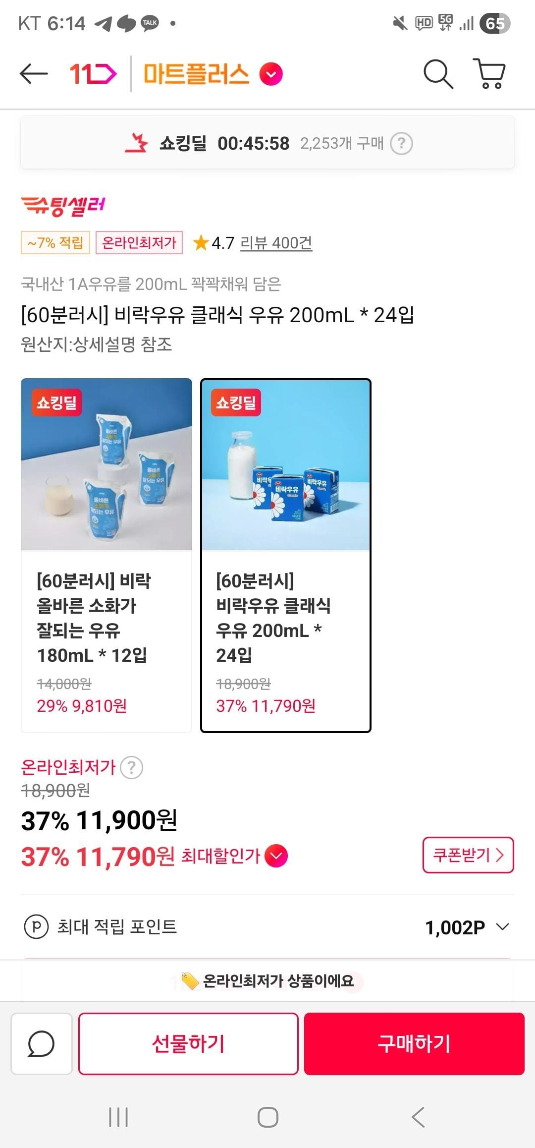 📦 비락우유 클래식 우유 200mL * 24입