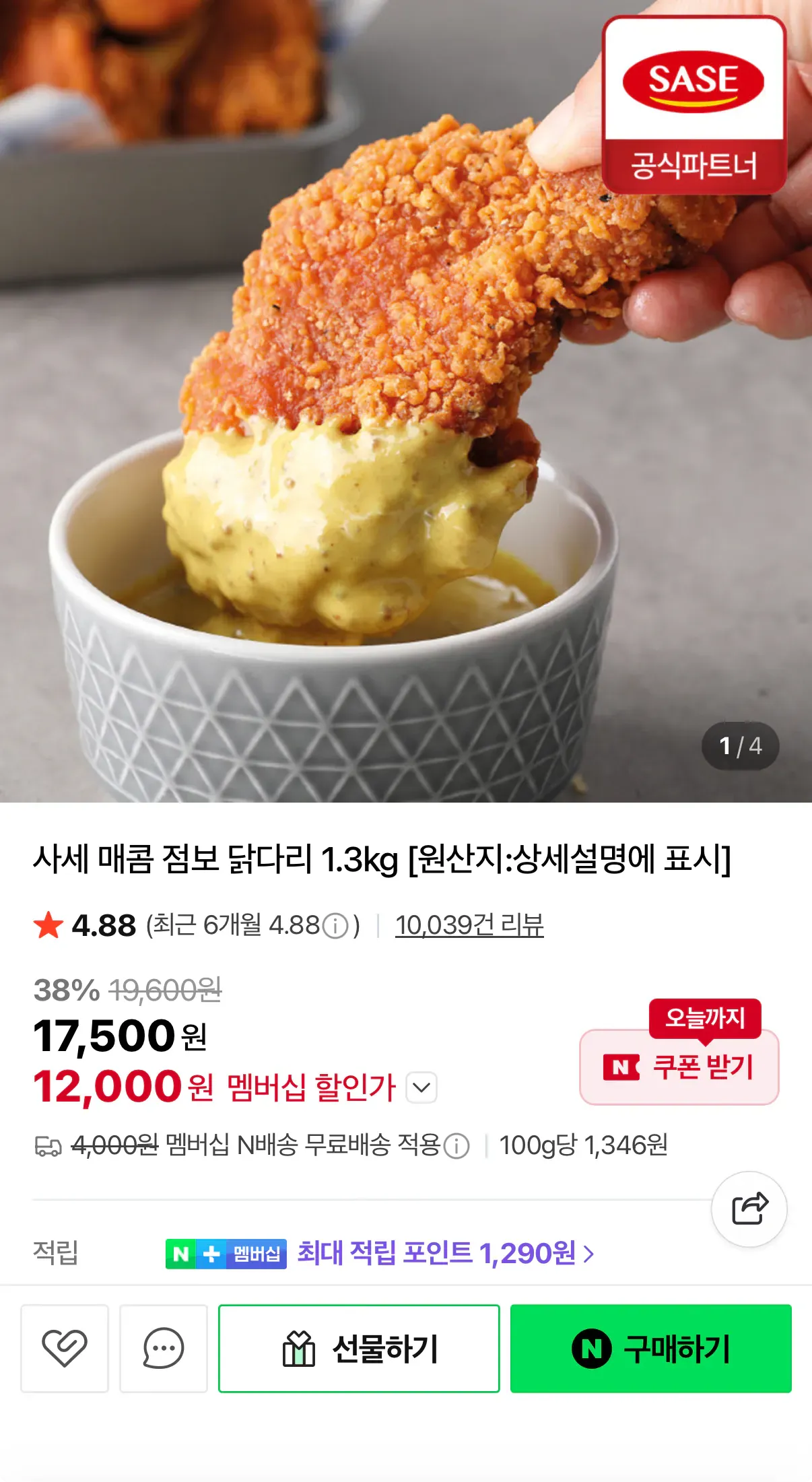 네이버사세 매콤 점보 닭다리 1.3kg12,000원핫딜모음핫딜모음에서 제공한 가격