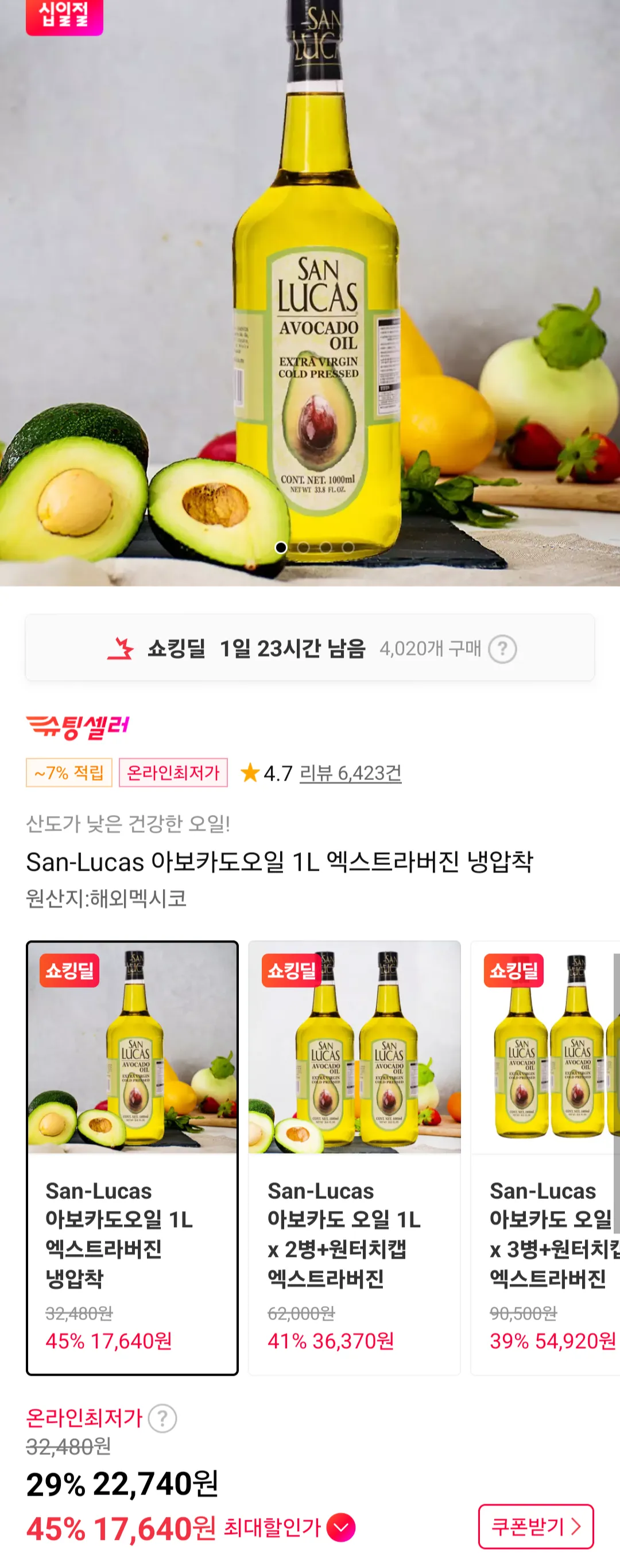 | 다나와 | 산루카스 엑스트라버진 아보카도 오일 1L | 23,540원 | 최저가 (배송비 포함) |