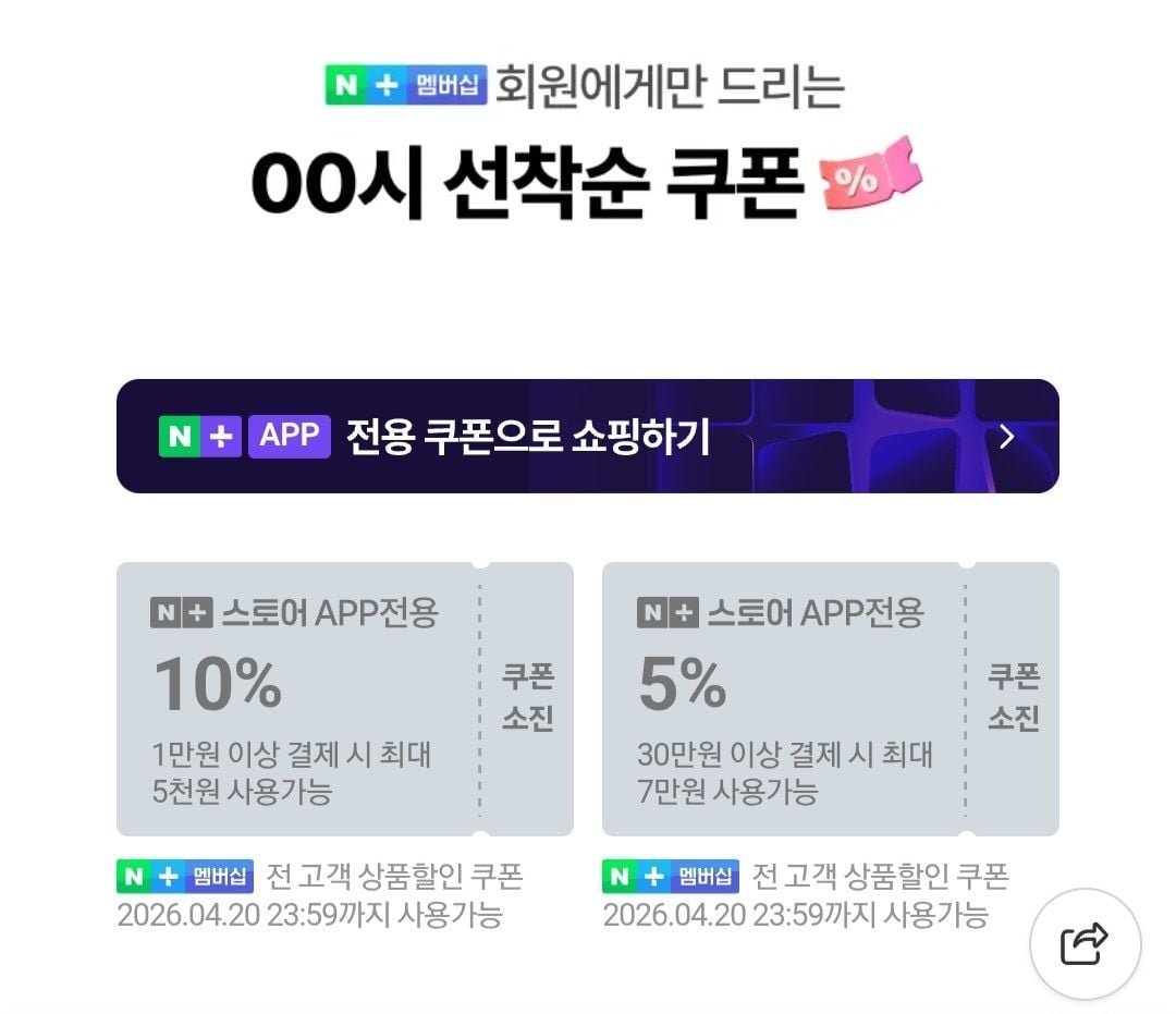 00시부터 네이버 앱전용 10%쿠폰