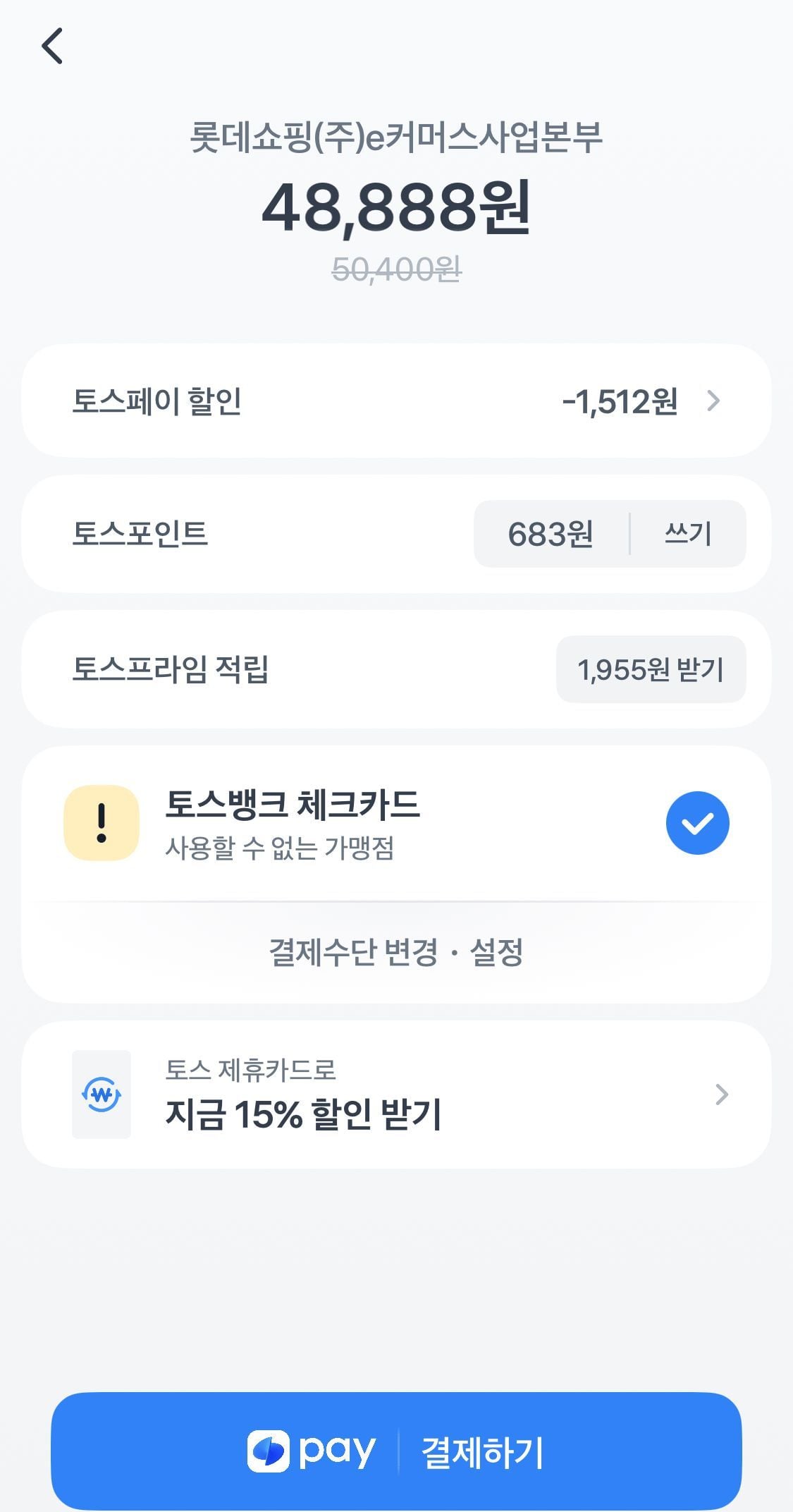 토스 경유해서 롯데온 3% 쿠폰 받고 결제 해야 가격 나옴