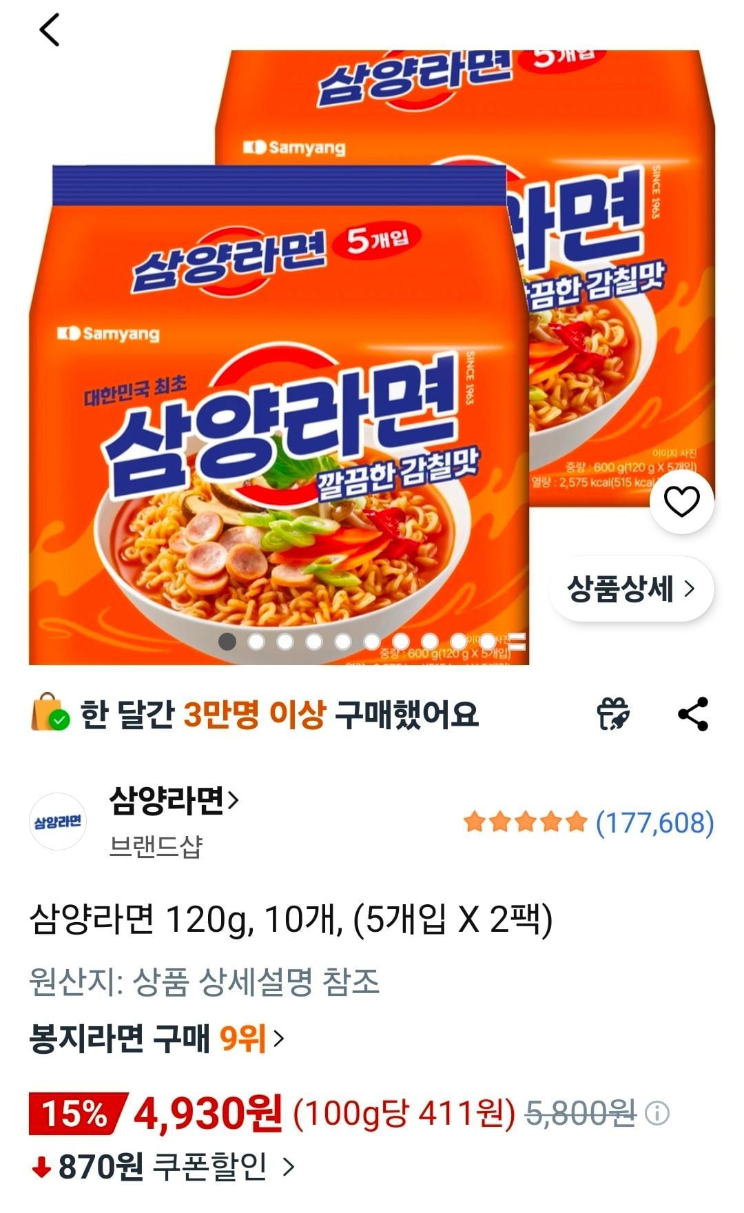📦 삼양라면 120g, 10개