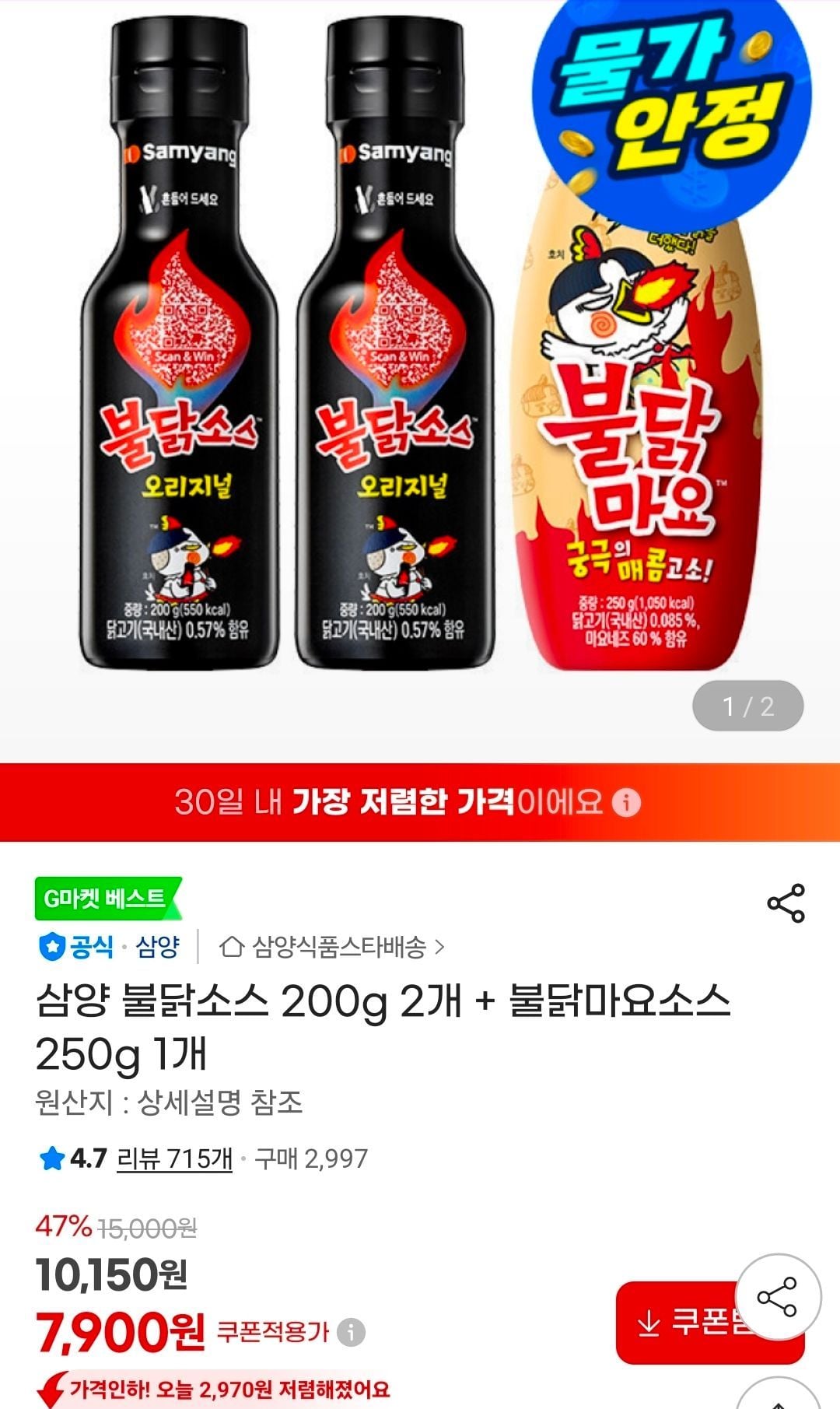최저가, 비슷한 구성(불닭마요소스 2개)