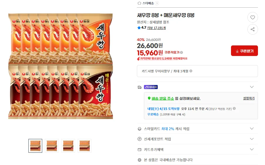 📦 새우깡 8봉 + 매운새우깡 8봉