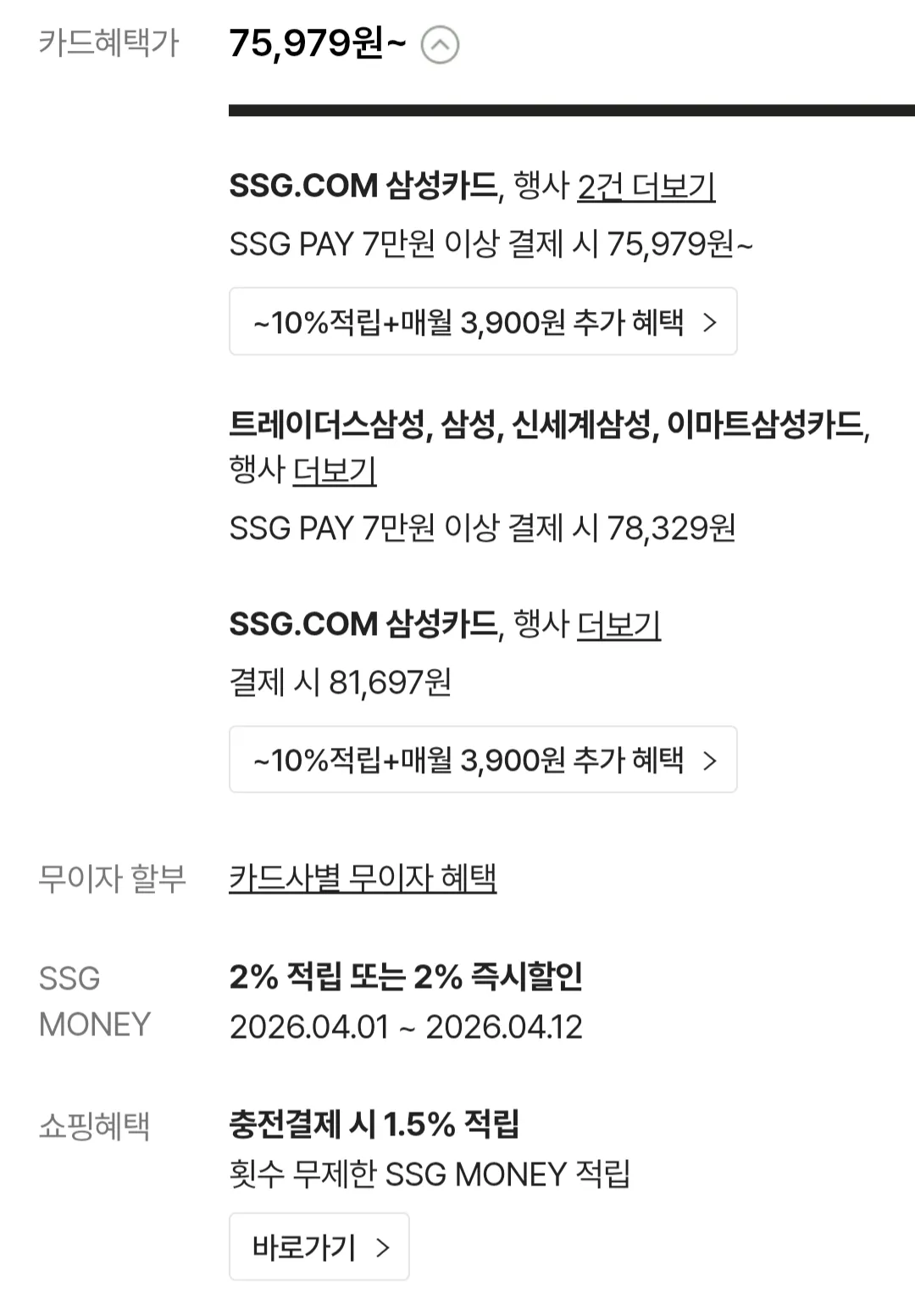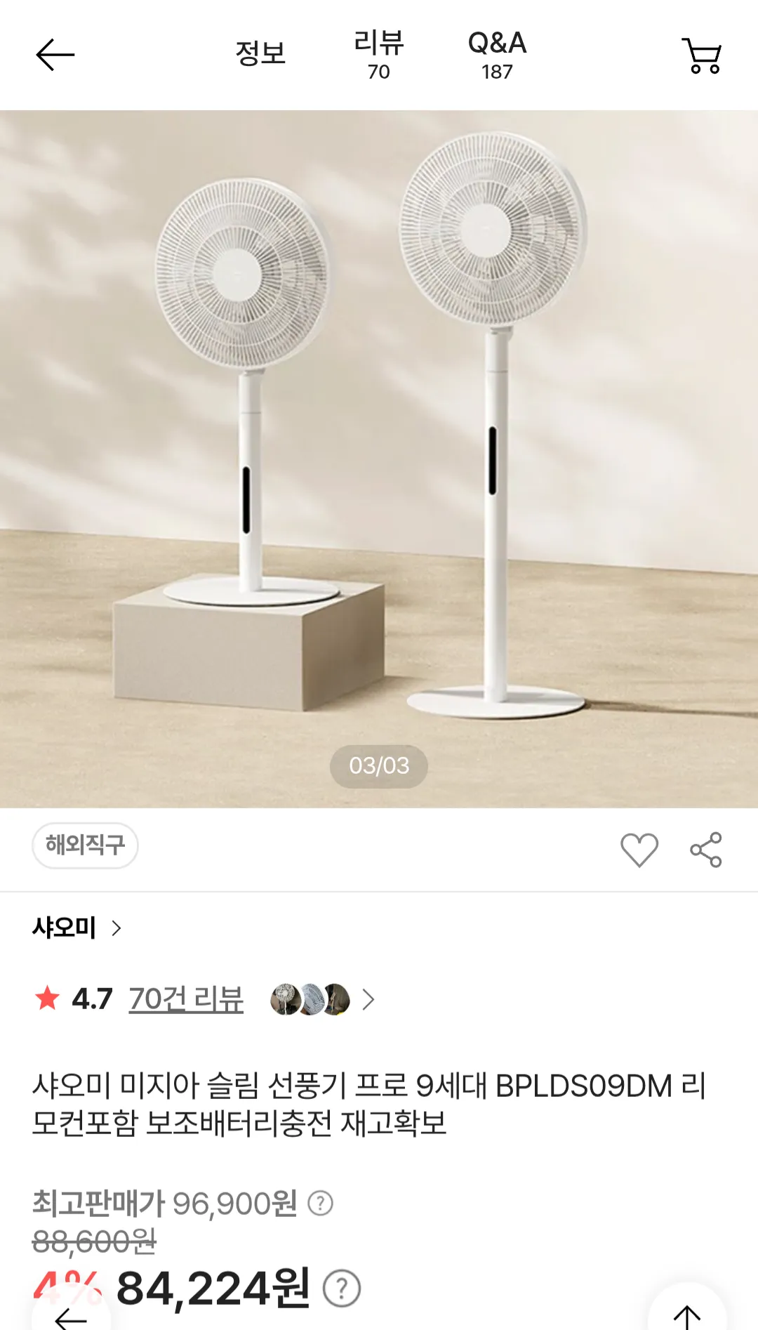 | SSG | 샤오미미지아 프로 9세대 선풍기 삼성카드 | 75,979원 | 핫딜모음에서 제공한 가격 |