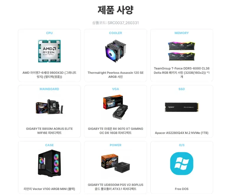 롯데ON서린컴퓨터 9800X3D_RX 9070 XT 16GB_RAM 32GB_V100 ARGB MIMI 블랙 조립PC3,899,000원최종가, KB국민카드 7% 할인 가능