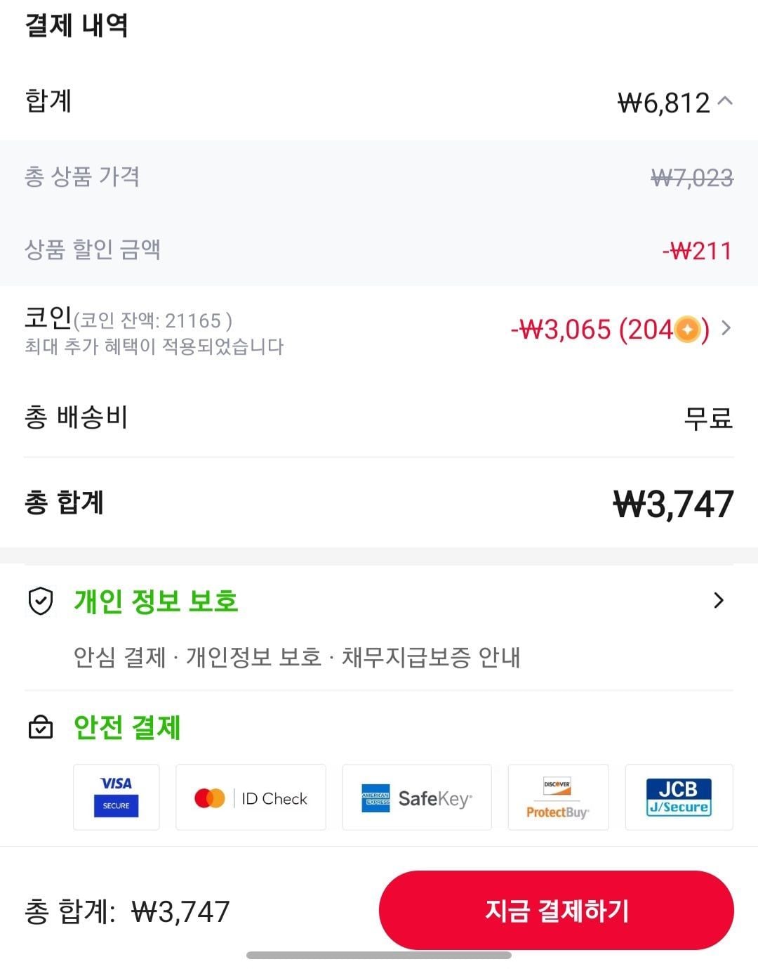 코인샵 45% 할인 받아서 3747원 나오고