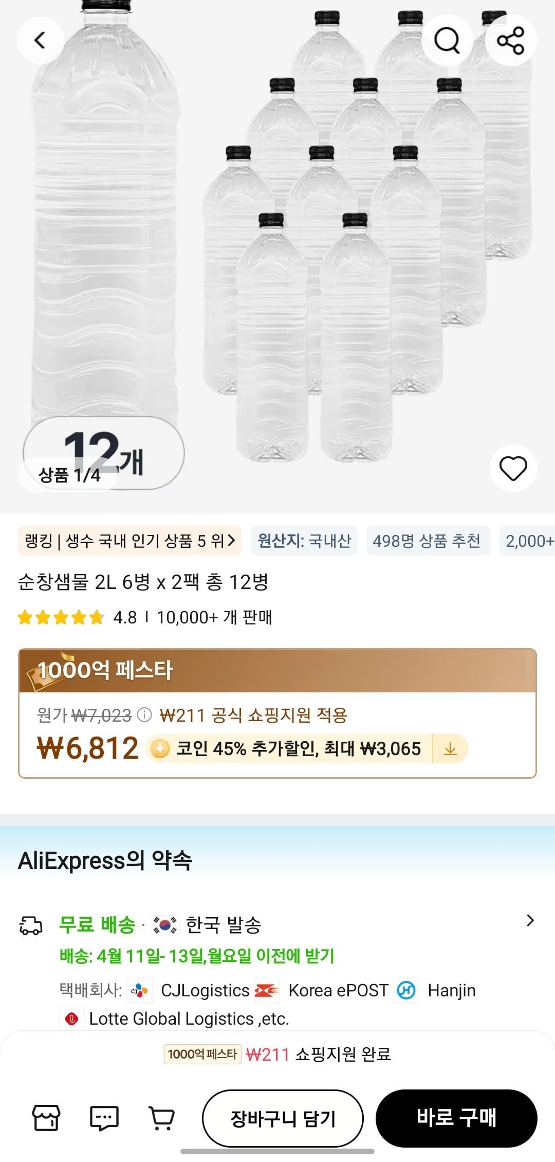 📦 순창샘물 2L 6병 x 2 총 12병