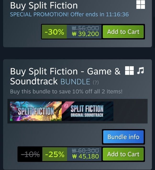 | 스팀 | 스플릿 픽션 30% 할인 | 39,200원 | 핫딜모음에서 제공한 가격 |
