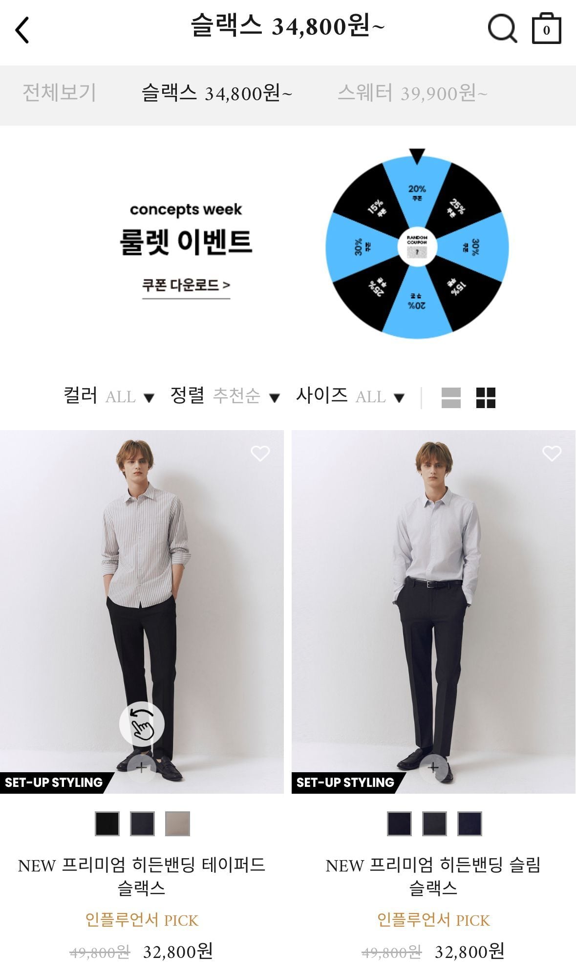 슬랙스 만원 중복쿠폰주고 룰렛 랜덤쿠폰 잇어서