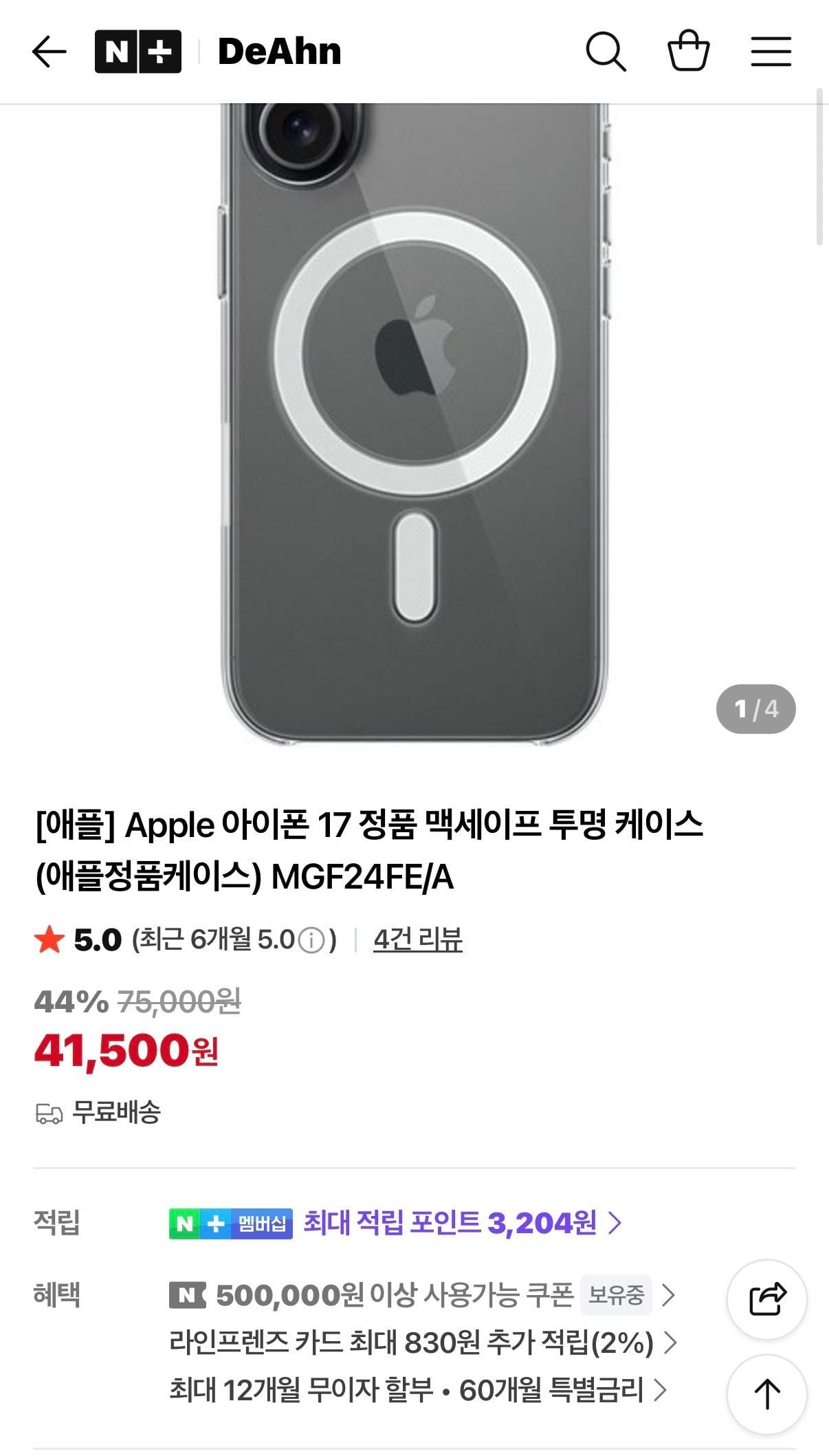 | 네이버 | 아이폰17 정품 맥세이프 투명 케이스 | 41,500원 | 핫딜모음에서 제공한 가격 |