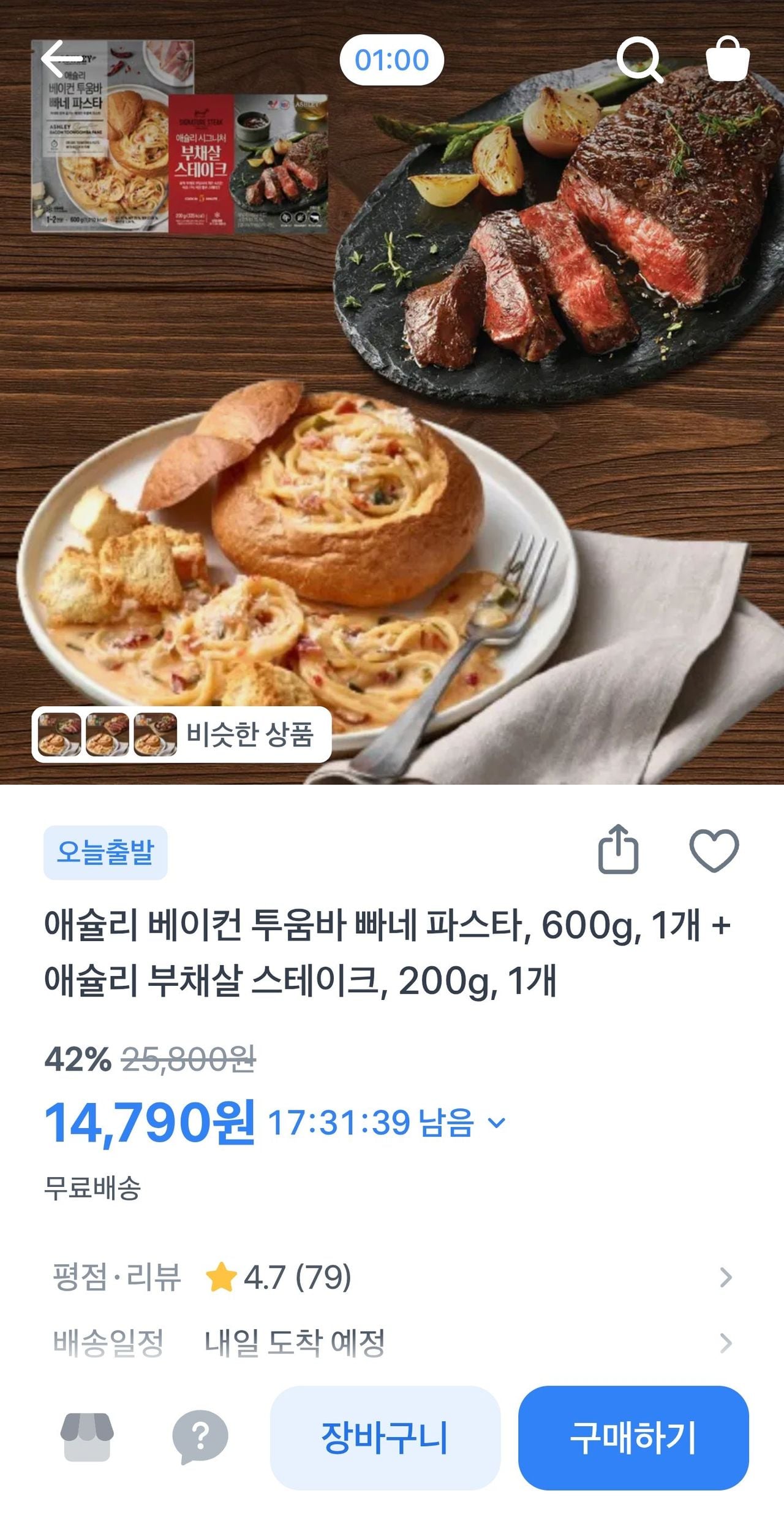 토스쇼핑애슐리 베이컨 투움바 빠네 파스타, 600g + 애슐리 부채살 스테이크, 200g14,790원핫딜모음핫딜모음에서 제공한 가격