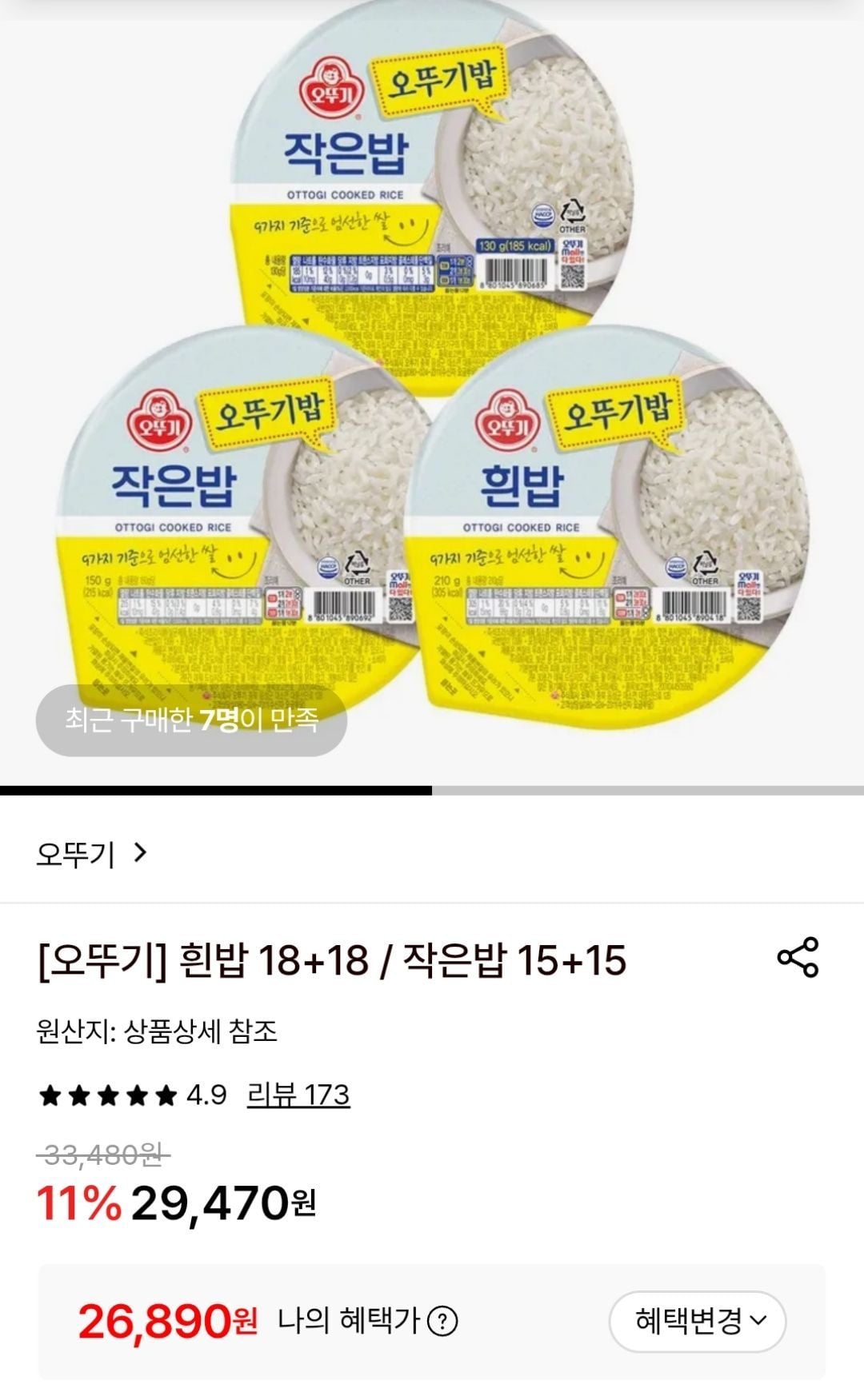 📦 오뚜기밥 210g 18+18 총36개입