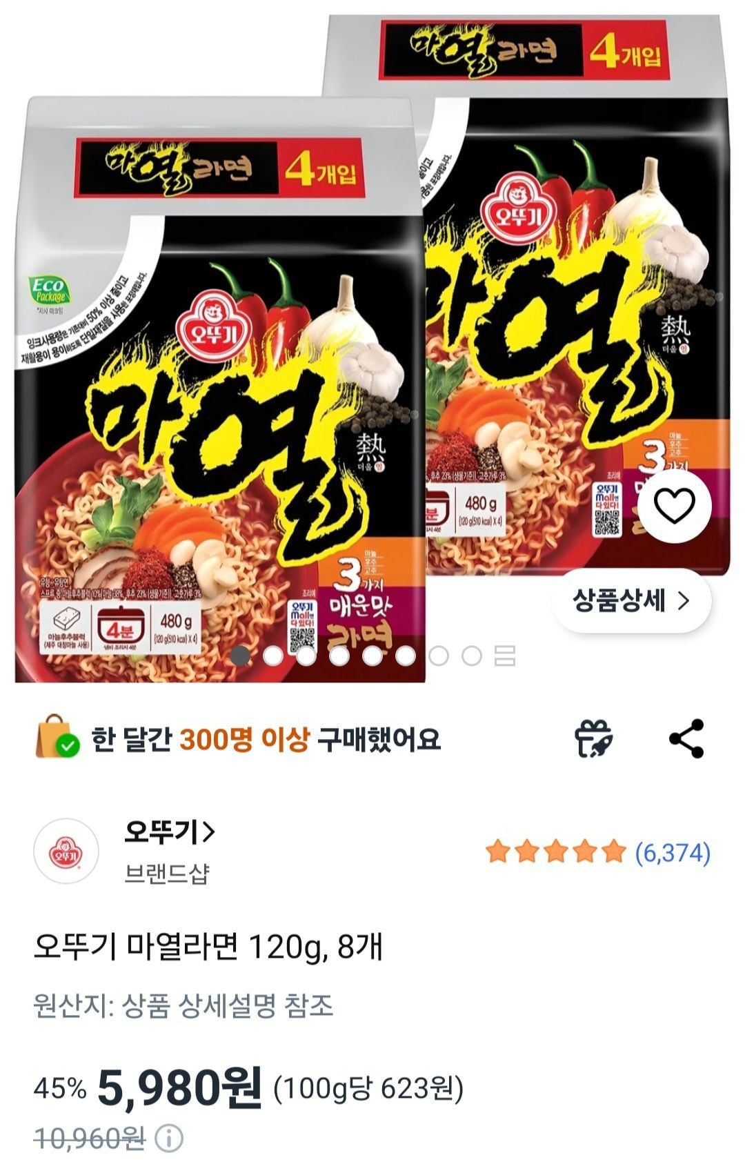 | 쿠팡 | 오뚜기 마열라면 120g x 8개 | 5,980원 | 핫딜모음에서 제공한 가격 |