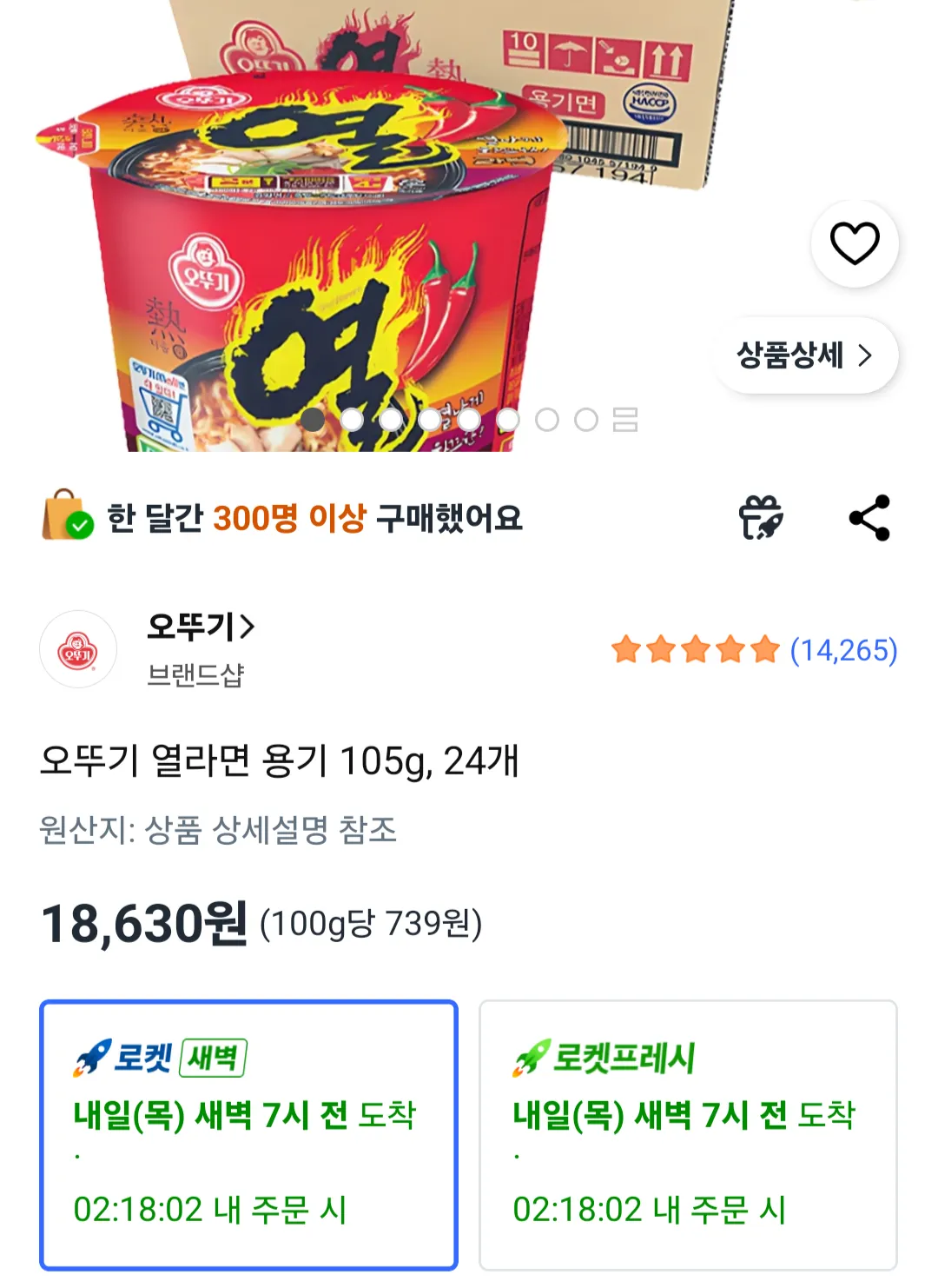 예스24오뚜기 열라면 용기 105g x 12입15,900원할인가 (29% 할인)