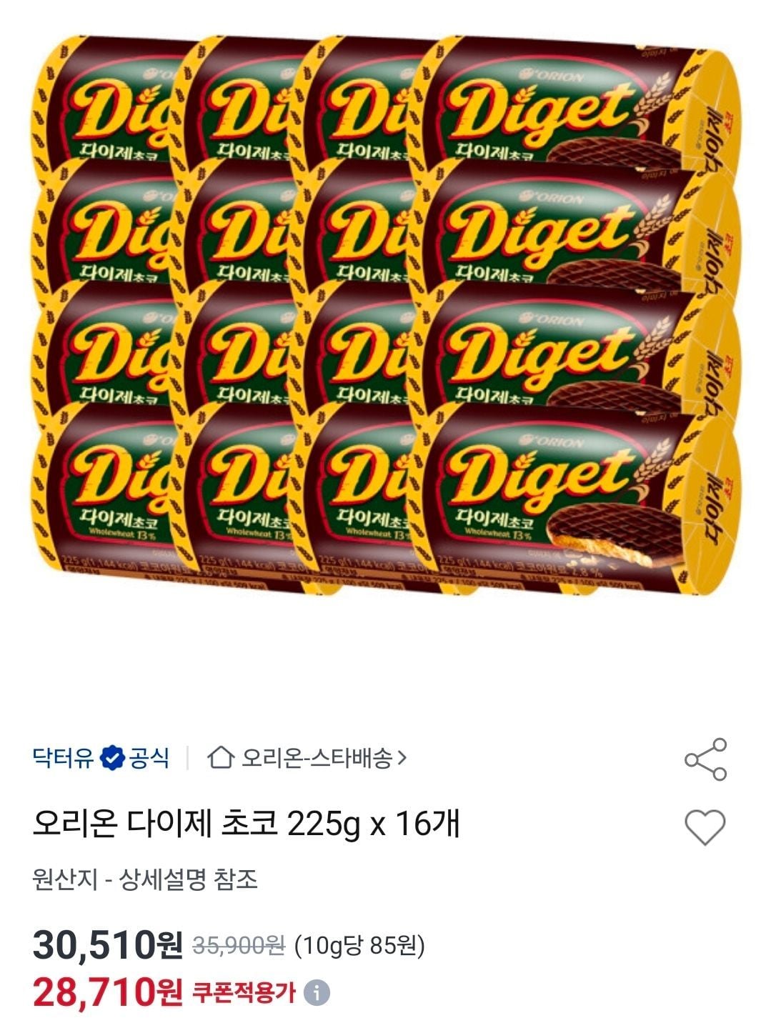 11번가오리온 닥터유 다이제 초코 225g (16개)3,000원다나와 가격비교 (참고: 개당 가격 가능성, 확인 필요)