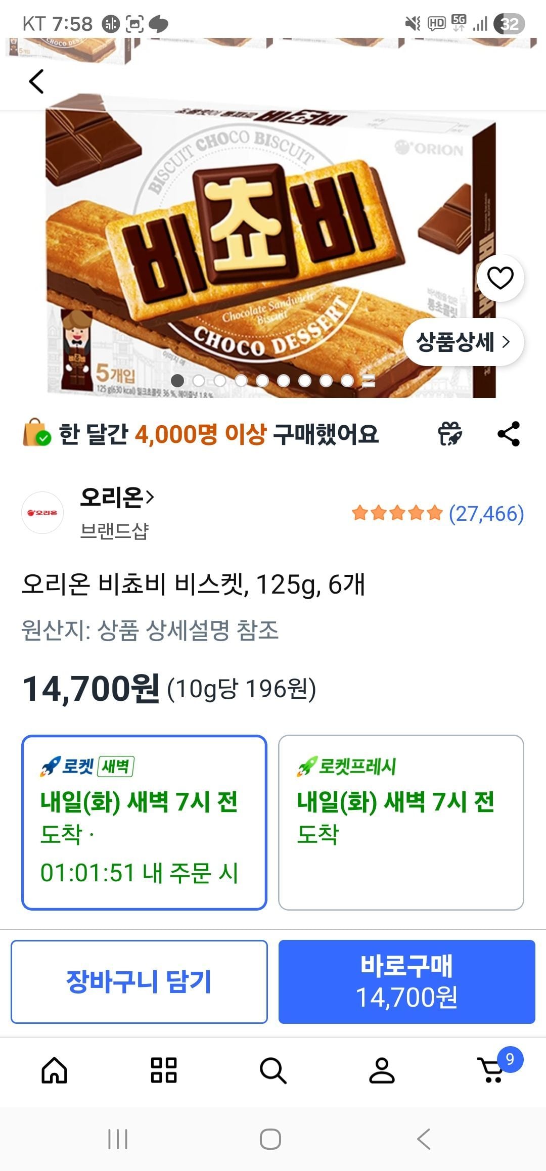 📦 오리온 비쵸비 비스켓, 125g, 6개 (쿠팡)