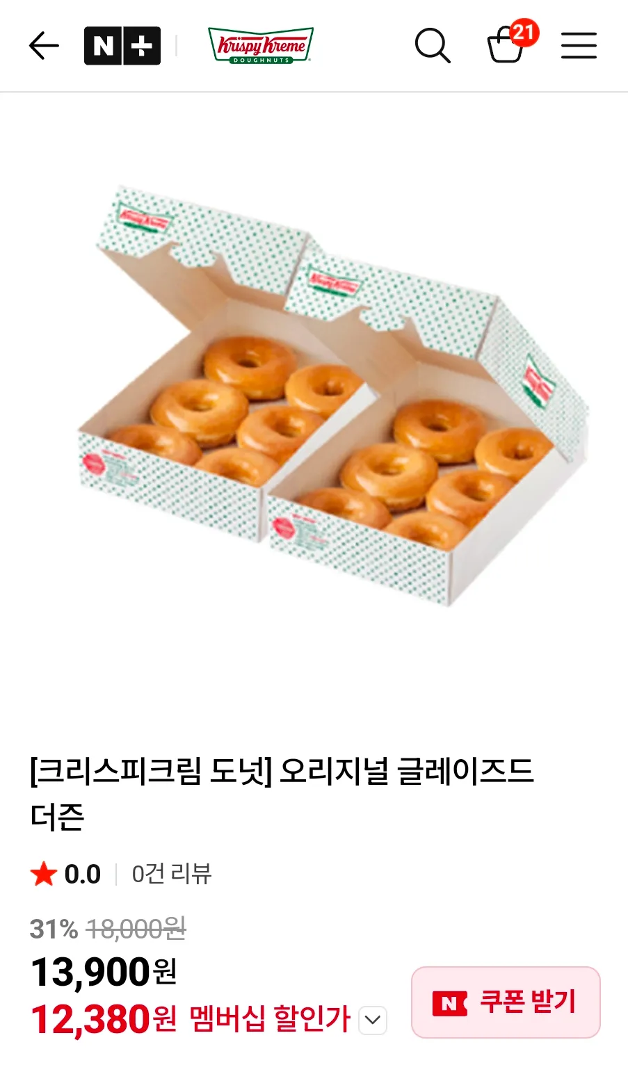 11번가오리지널 글레이즈드 더즌18,000원크리스피크림도넛 공식 스토어